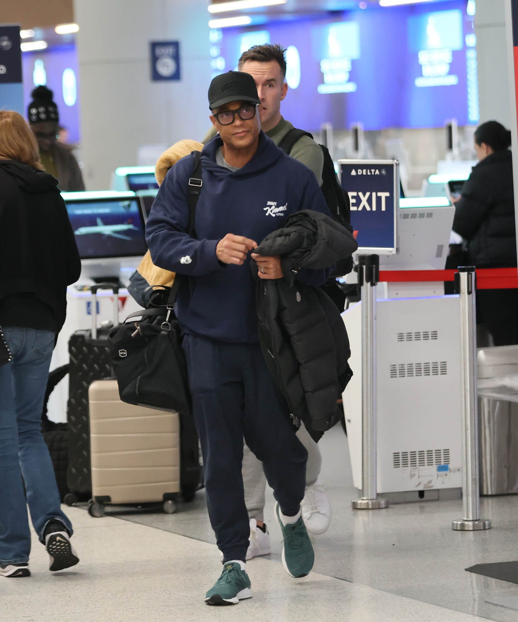 Don Lemon at LAX, February 2, 2026, and at Kimmel in LA, February 1, 2026