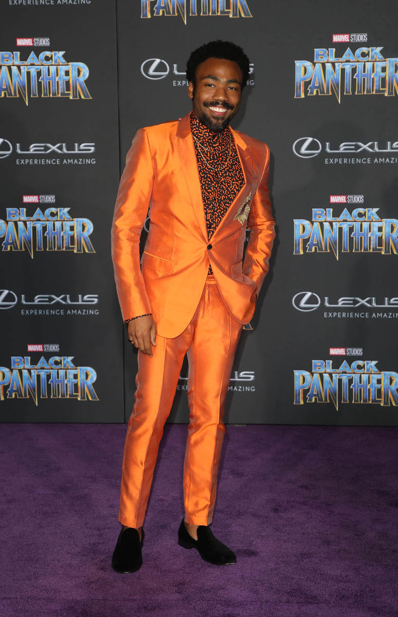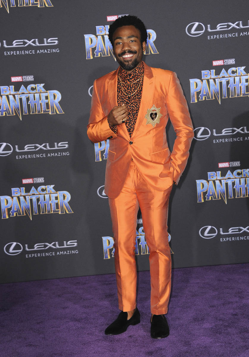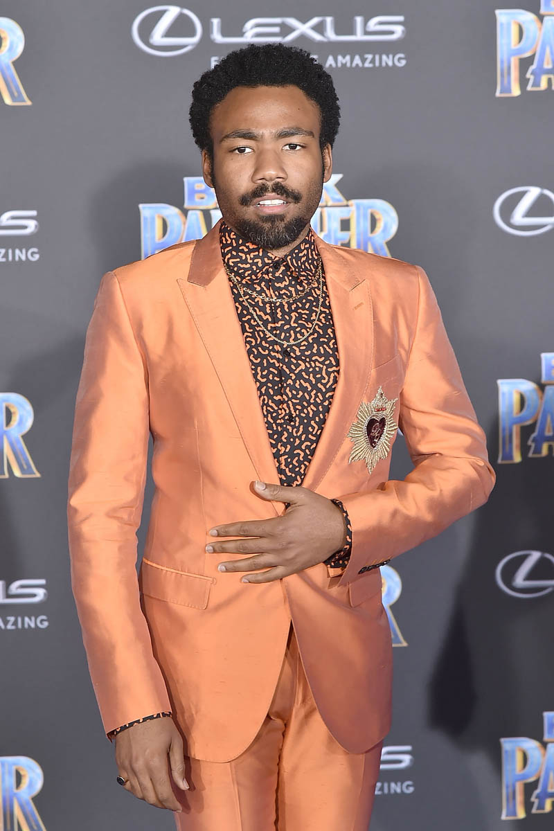 On Sunday night, Donald Glover won a Grammy and performed at the Grammys and left us all panting from the sex. Which wasn’t sex at all but it might as well have been because he brought the sex. On Monday Donald was seen arriving at LAX because he had an appointment. With Black Panther. Black Panther is Marvel. And Marvel is affiliated with Disney. And Disney is Star Wars and The Lion King. And Donald is Lando Calrissian and Simba. So, sure, in a sense he was there as a member of the corporate family.