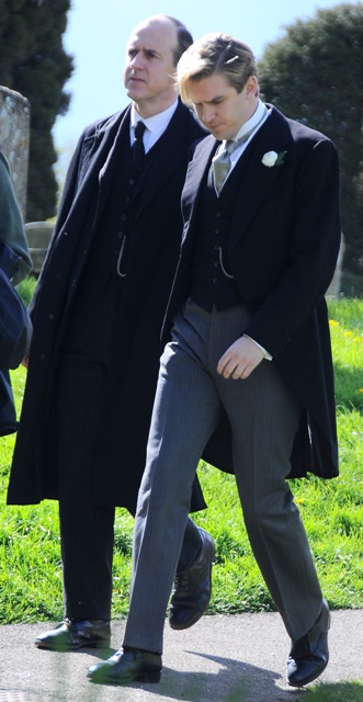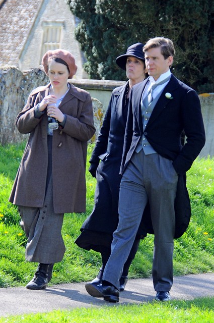 Here are new shots from the set of Downton Abbey series 3. My eyes are buggy but is that Lady Edith and ...Sir Anthony Strallan? God, I hope that doesn’t mean she’ll be happy. Because it’s always better when Edith is a bitter bitch. She wasn’t bitter enough in series 2. Add that to the long list of what was wrong with series 2.