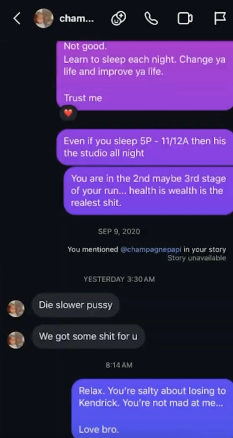 “Drake is not that important. The reason Drake’s in this is because he is a sickness in the game. It could have been any artist, but it’s what Drake represents. People love Drake – they love his music, we love his music. He’s beloved. He’s not willing to go rip his soul from the bottom and do ayahuasca and look himself in the mirror as Kendrick had prescribed to him. It’s about what the game does to artists who try to dominate it,” he said.