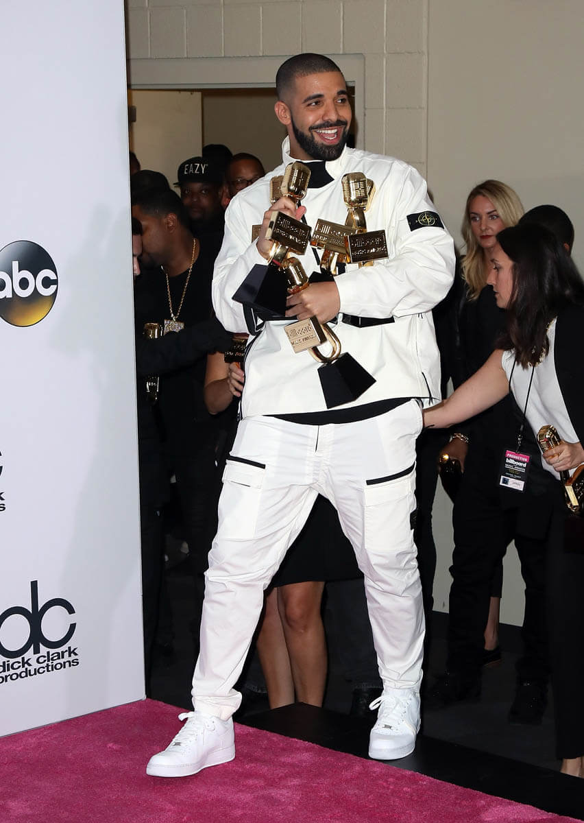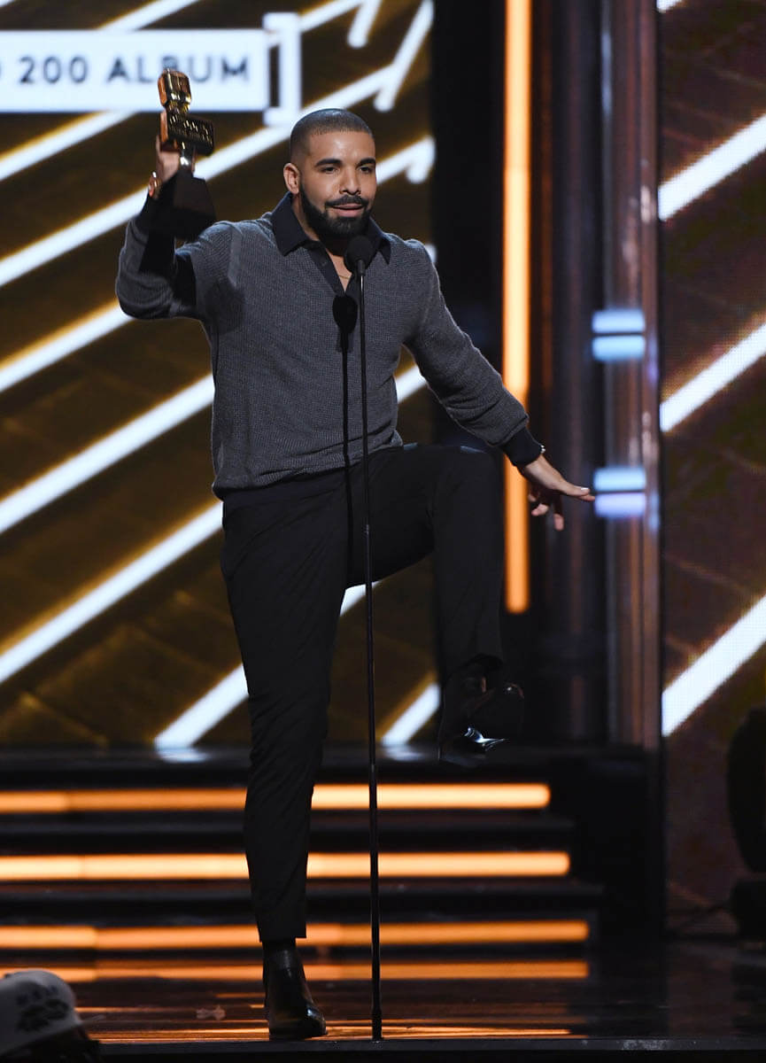 That said, despite the lack of suspense, Drake certainly came to entertain. Or was it just me? I loved him last night. I loved the leg kick during his acceptance speech when he called out his dad and his purple suit and shoes: