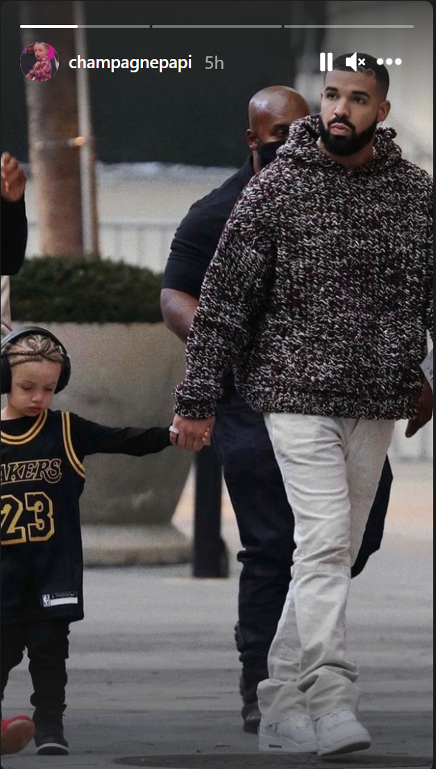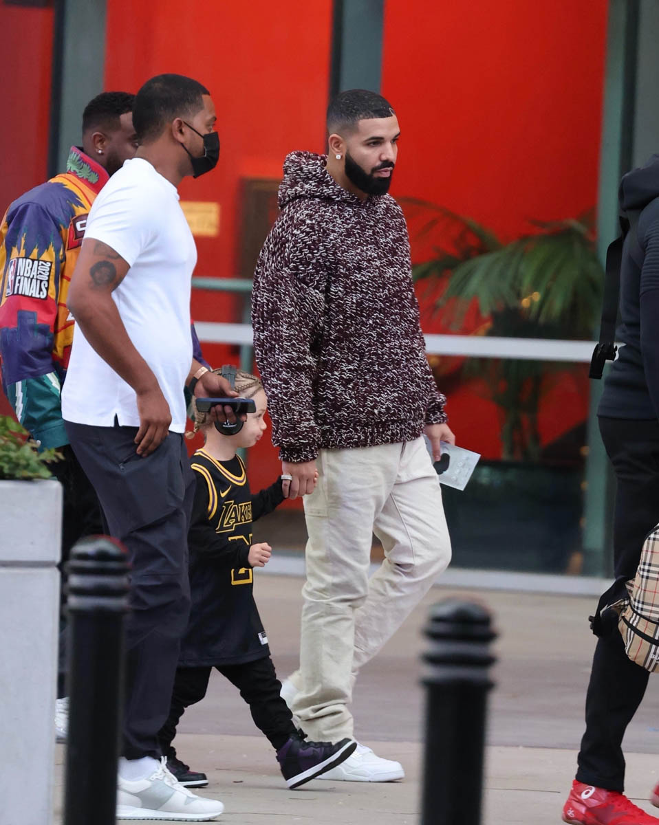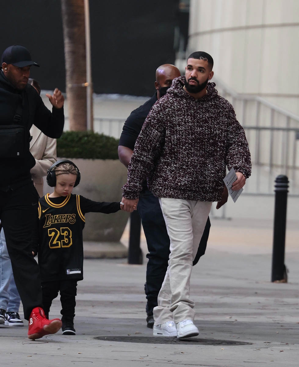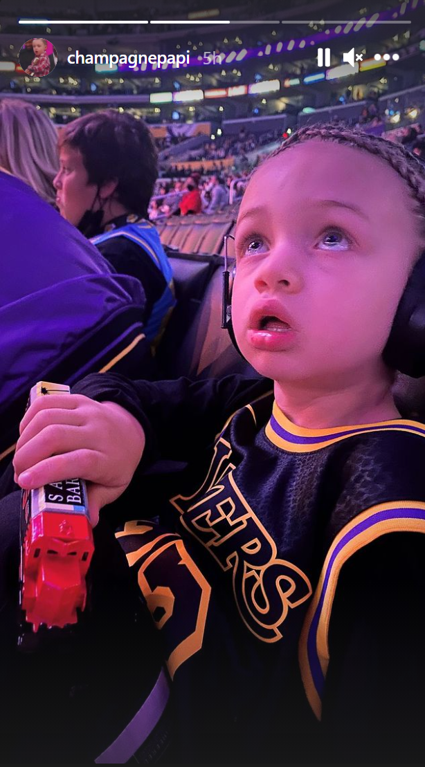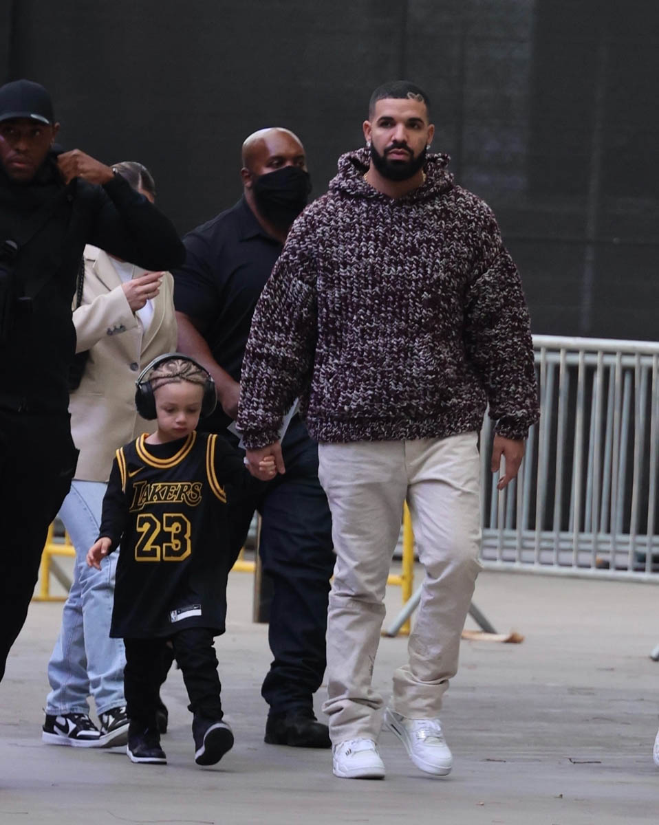 Drake and LeBron James are friends, so here’s Adonis arriving at Game 6 between the Lakers and the Suns yesterday with his dad repping Lakers #23. Drake is so proud of this shot that he posted it on his own IG stories: