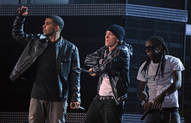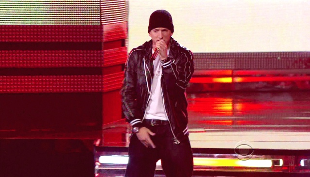 Thank you for your emails in support of my quiveration for Eminem validating me against Duana’s disgust. He was HOT last night. And even Michelle admitted his face didn’t look so f-cked up. Check the way he’s wearing his pants. Please. With Drake and Wayne, Em delivered. Em was sharp, Em was tight, Em was SEX, and Drake is the pride of the 416.