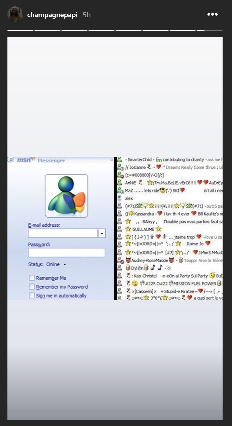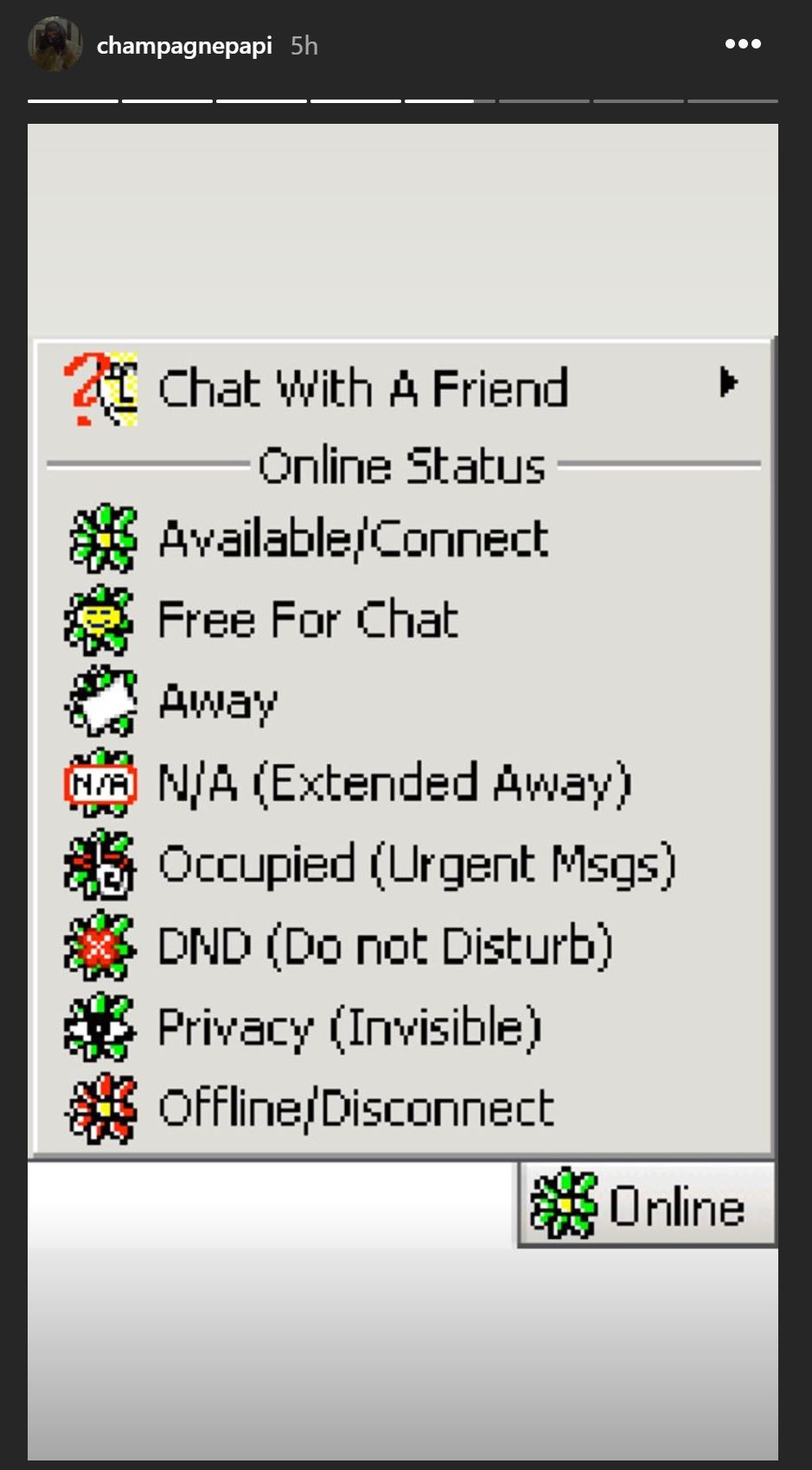 On his IG stories last night, Drake seemed to be going through some digital nostalgia, posting shots of a Nokia phone, a Blackberry, and MSN Messenger.