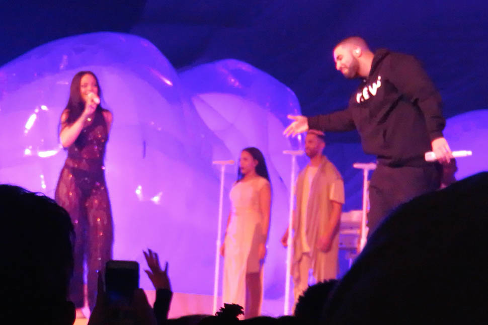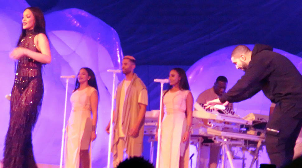 I mentioned in yesterday’s Drake post that he was in Toronto for Rihanna’s first concert in town. And they hung out together afterwards. And that, well, the expectation, and we were all expecting it, was that he would come on for night two. Which happened. But in the most bonus way possible. I mean of course they performed Work together. It’s been the #1 song of the year. And then she left and he stayed for his home audience and gave us One Dance, live, for the first time ever – a gift to the 6. You can’t put out an album called Views From The 6 and not reward the 6. And that’s how he ended, with these words: