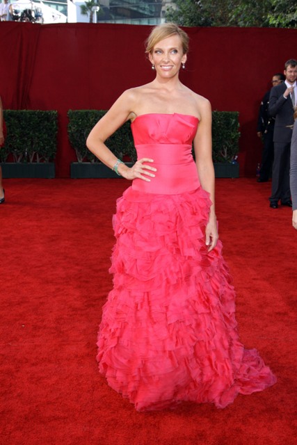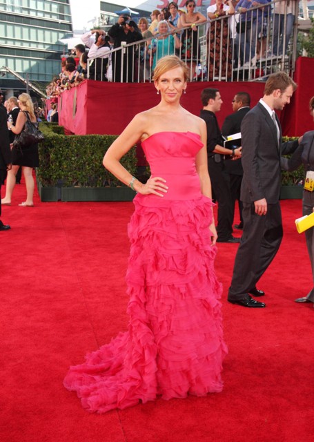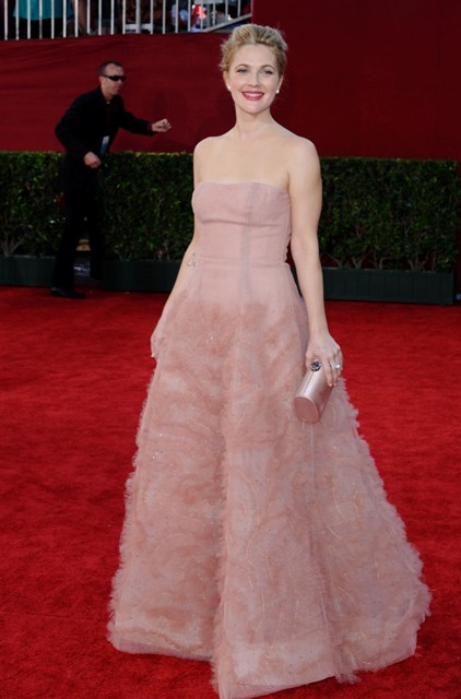 Two examples last night – Best Actress winner Toni Collette and also Drew Barrymore, one in bright pink, the other in pale pink, neither measuring up to the Pene standard.