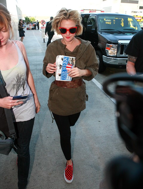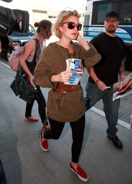 Drew’s ensemble at the LA premiere of Whip It didn’t do it for me. Yesterday she was spotted at LAX, SO much cuter. She also looks like she’s late. Apparently she’s always late. Which is why her producing partner initially had reservations about her directing.