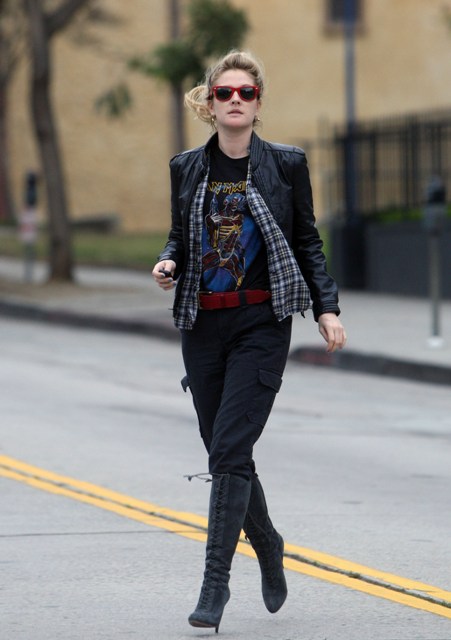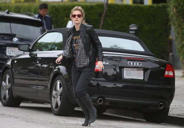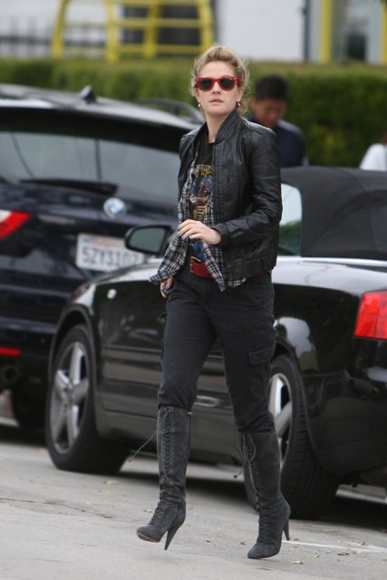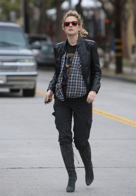 Attached - Drew leaving a spa on Christmas Eve in a killer leather jacket and I love her cargo pants and she’s presenting at the Globes on January 11th and remember a couple of years ago when she wore that green dress with no bra and that’s all you could talk about and then she went on SNL and made fun of herself and all was forgiven? Classic Golden Globe moments…hopefully more in 2009.