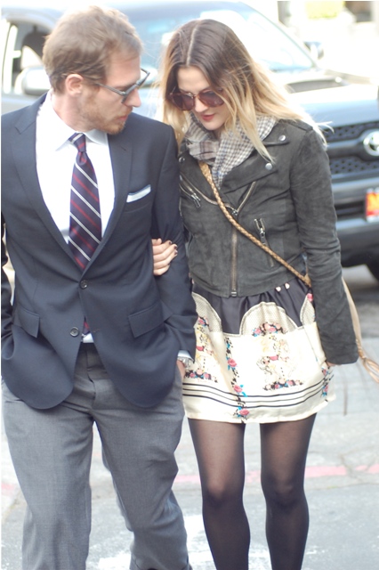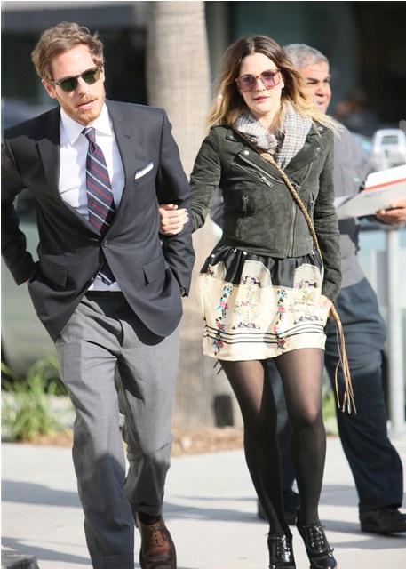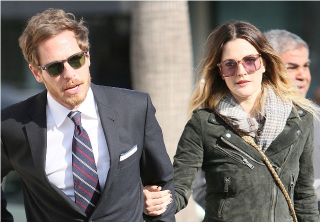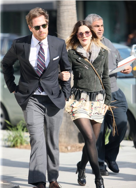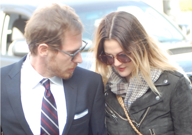 Here they are yesterday after lunch, allowing the paps a lot of photos, the first really great set of them walking arm in arm confirming they’re a couple. As you can see, Drew is still working that two tone hair thing. You like it? I actually kinda do. There you go, yelling again.