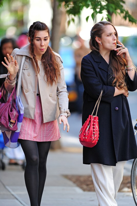 Attached - Zosia Mamet in NYC with Jemima Kirk shooting Girls this week.