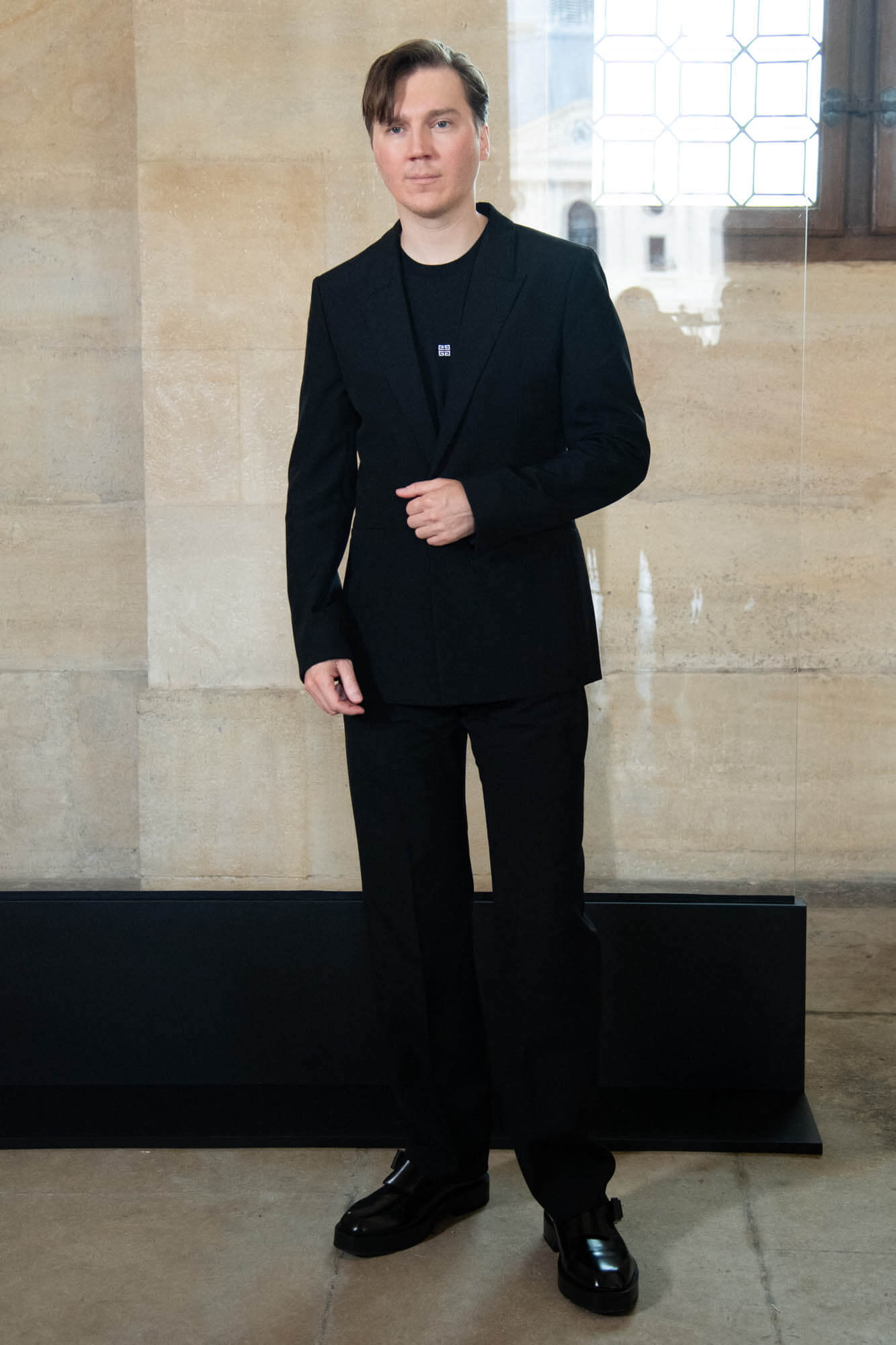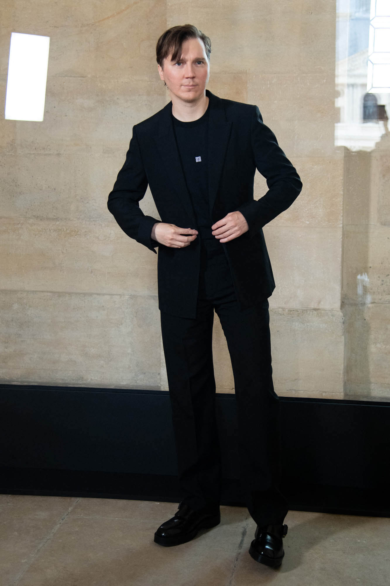 Here is Paul Dano at the Givenchy menswear show in Paris yesterday. Jared Leto was, ugh, also there.