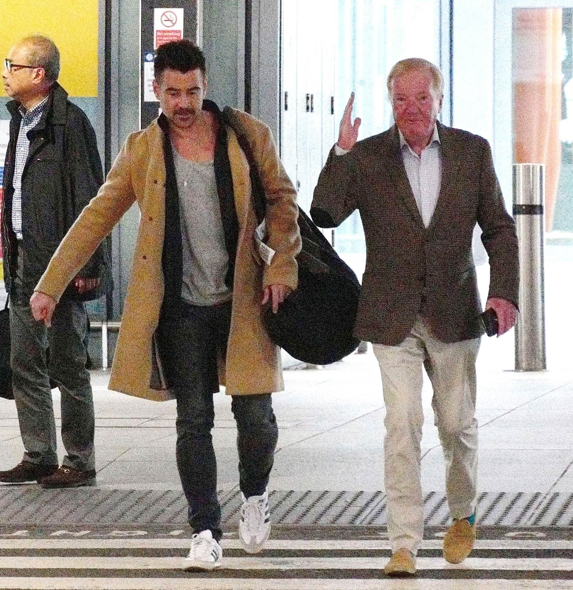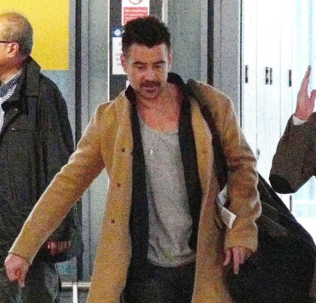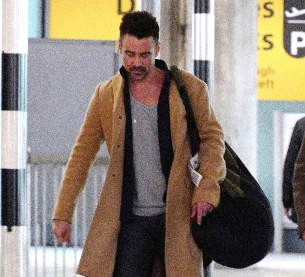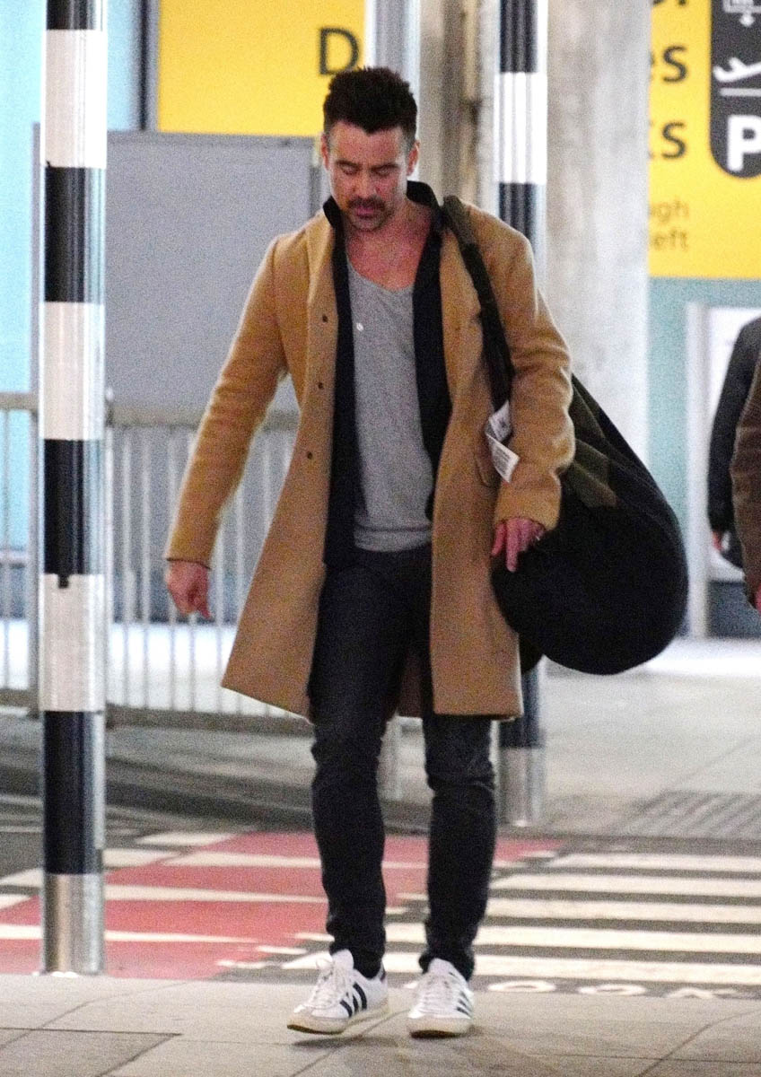 Attached - Colin Farrell arriving in London today.