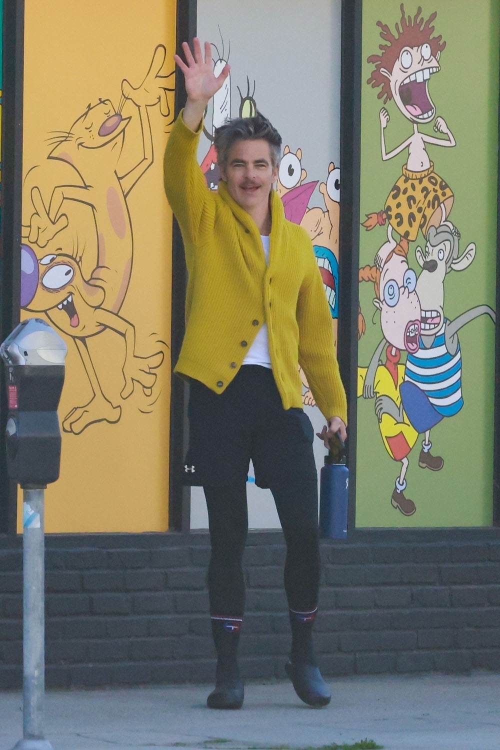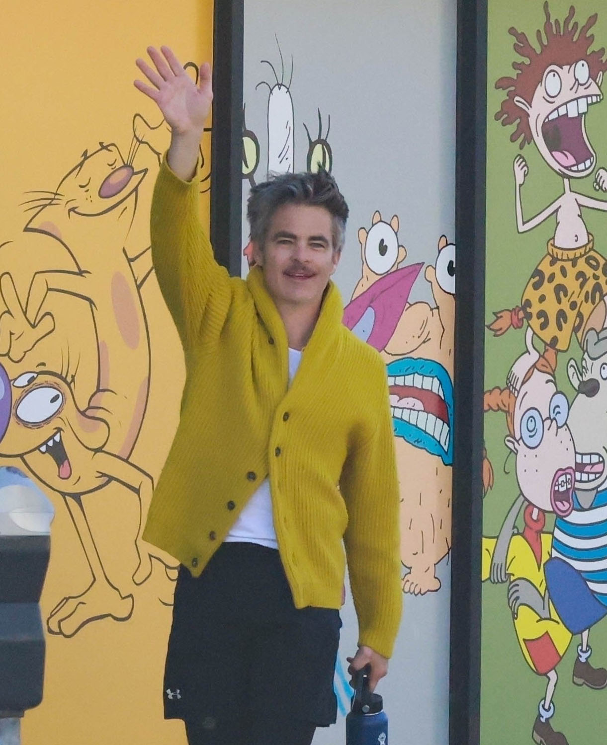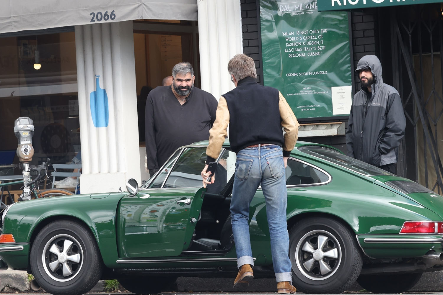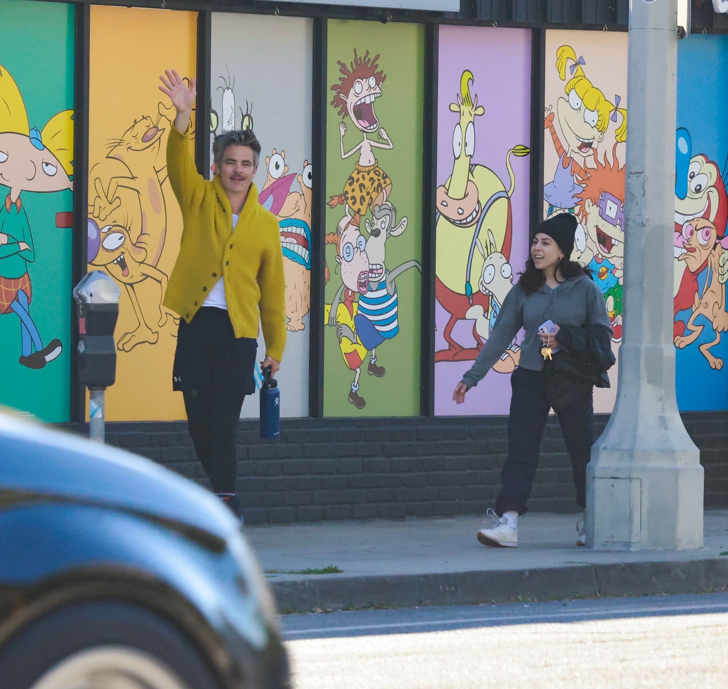 Here's Chris yesterday in LA heading to lunch in his green vintage Porsche. He has great taste in cars. That colour is gorgeous. Also please enjoy some other shots of Chris in a yellow cardigan.
