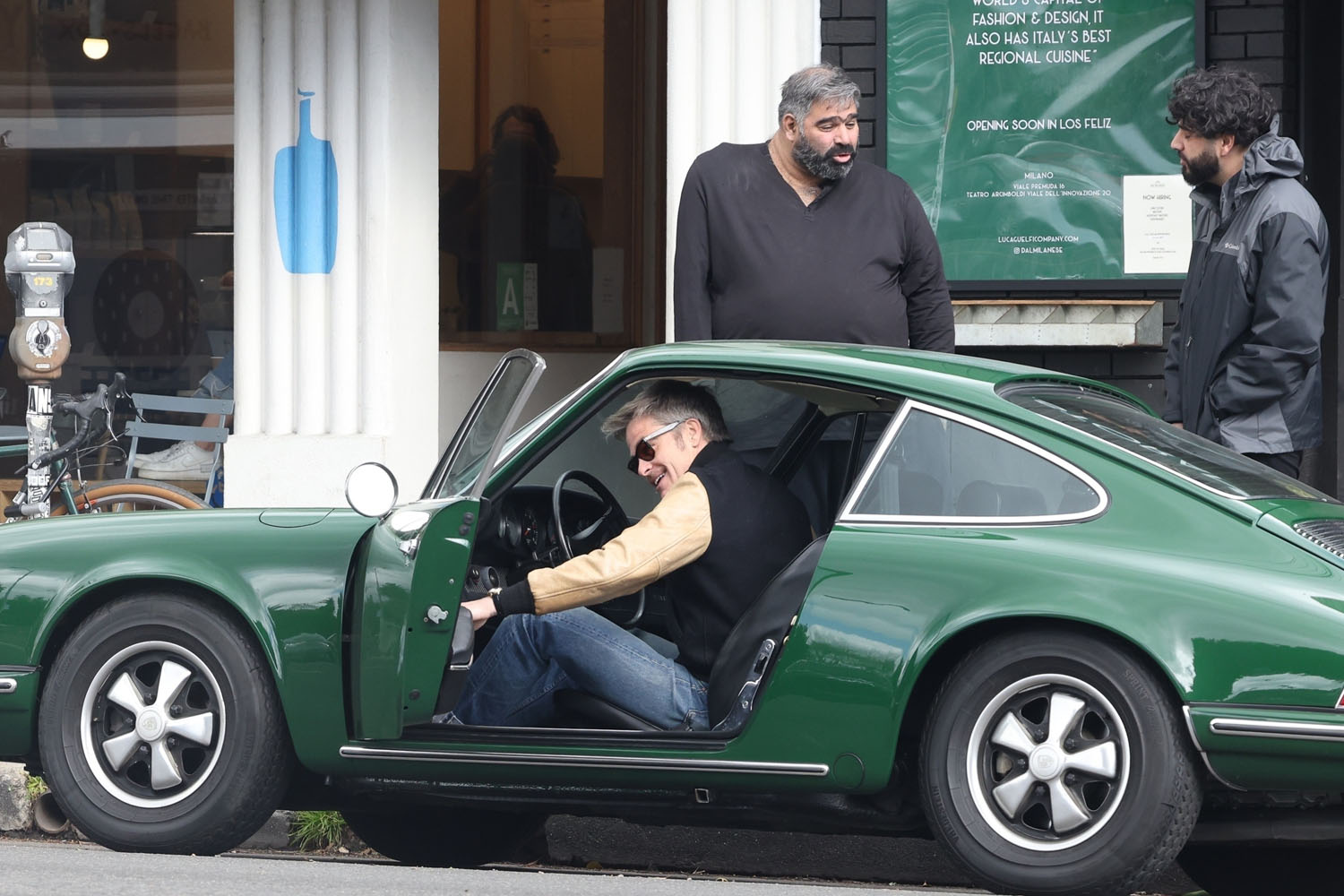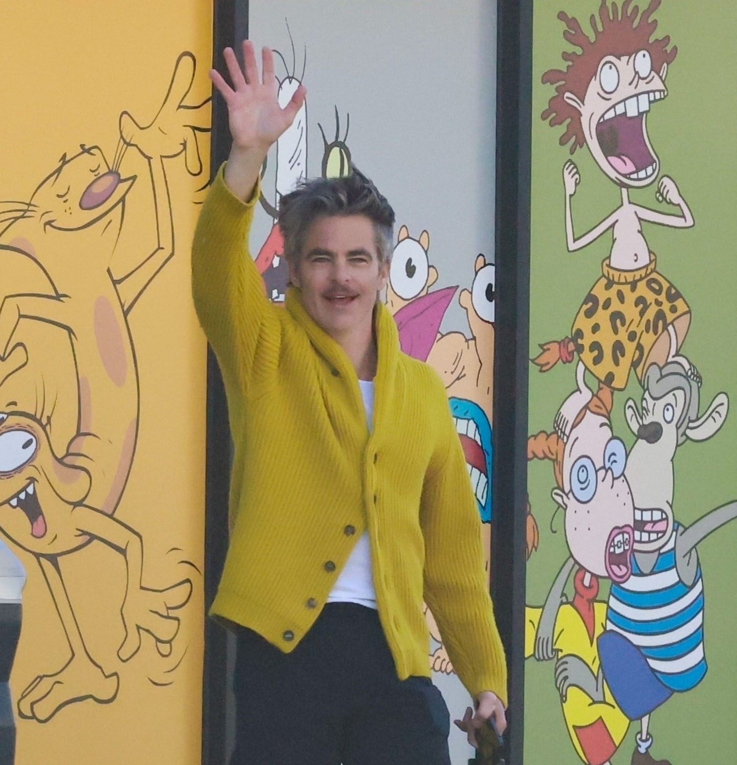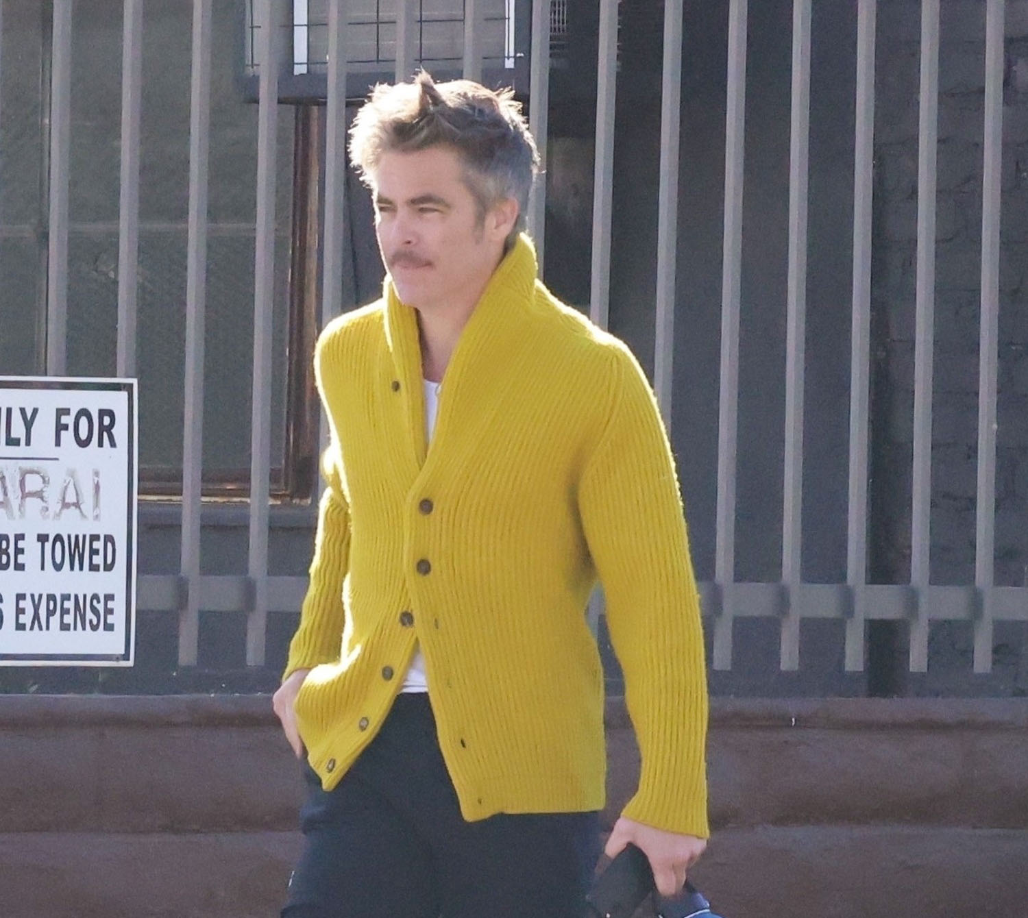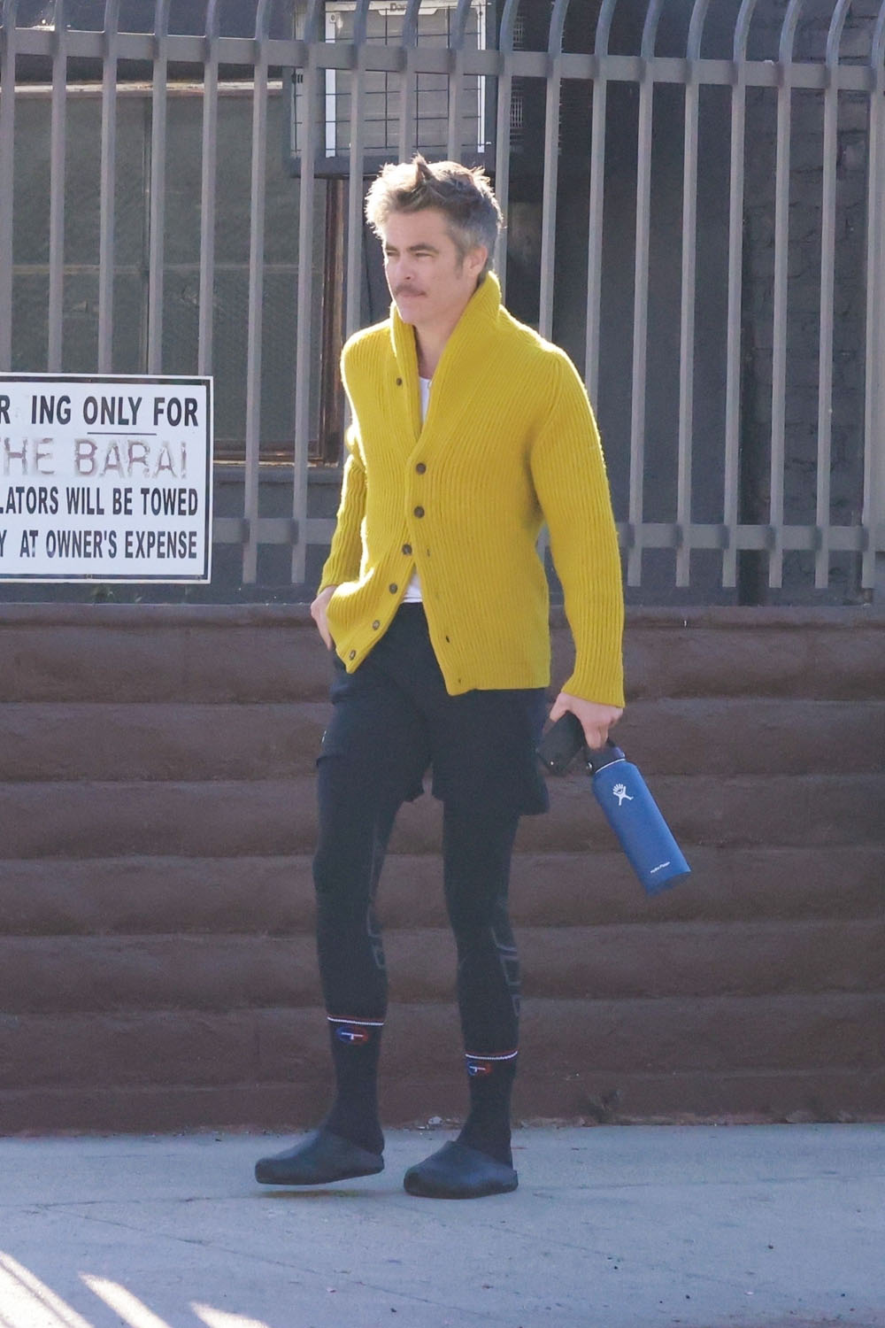 Here's Chris yesterday in LA heading to lunch in his green vintage Porsche. He has great taste in cars. That colour is gorgeous. Also please enjoy some other shots of Chris in a yellow cardigan.