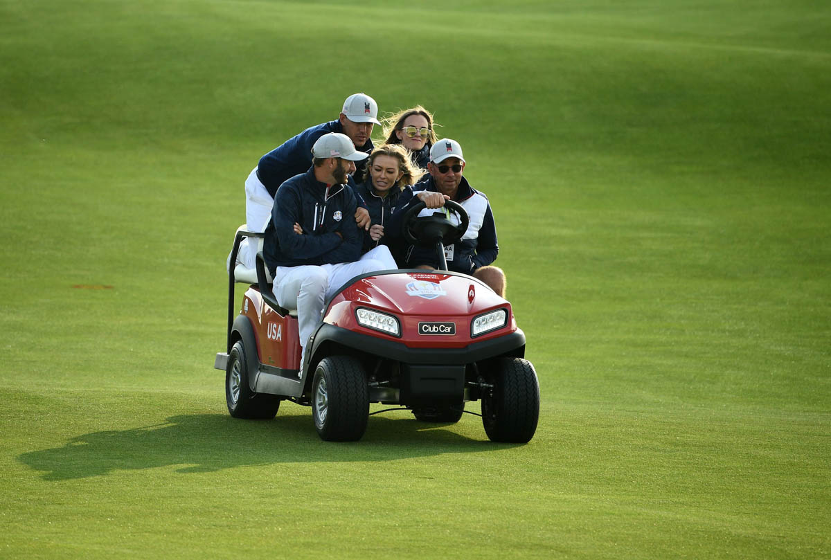 As Maria wrote last week, Paulina Gretzky accompanied Dustin Johnson to the Ryder Cup in France this weekend. Paulina’s presence was supposed to silence rumours about their troubled relationship, which started when Paulina deleted him from her Instagram. But almost all of the other players were joined by their partners. If Paulina had stayed home, it would have been unquestionable confirmation that they’d still not been able to sort out their sh-t. So did they sort out their sh-t? We’re talking about Dustin Johnson. And where DJ is concerned, there is always drama.