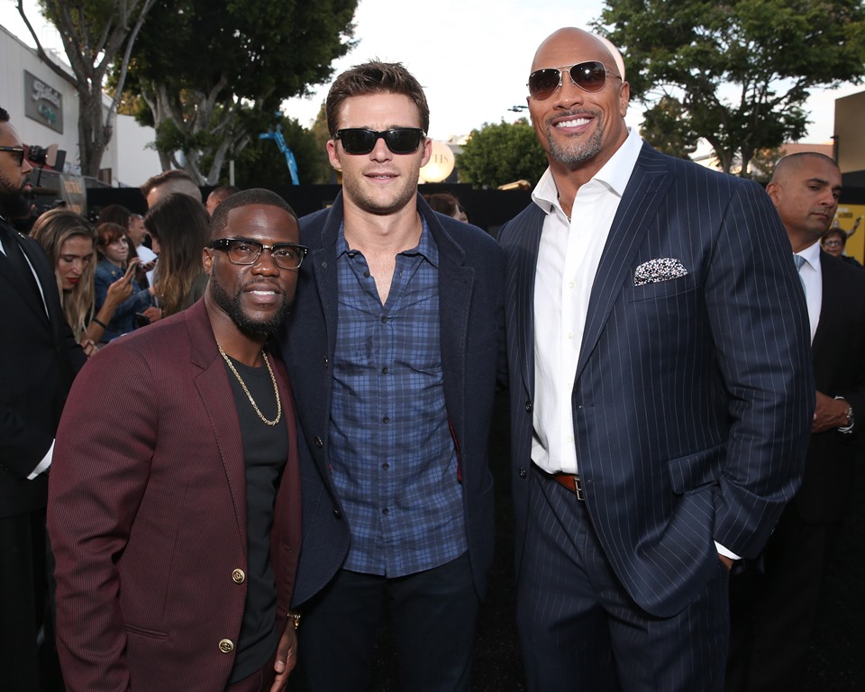 But that doesn’t mean it’s Scott Eastwood. Sorry to disappoint. I hoped at first it was Scott Eastwood. But I don’t think it’s Scott Eastwood. Here’s Scott with The Rock earlier this summer supporting him (not that The Rock needed it) at the premiere of Central Intelligence.