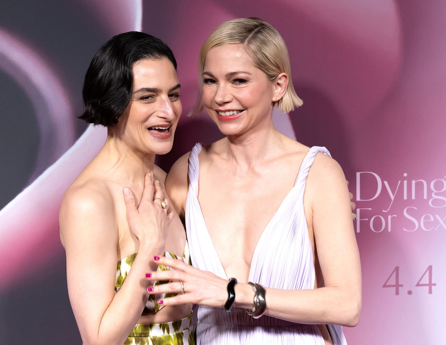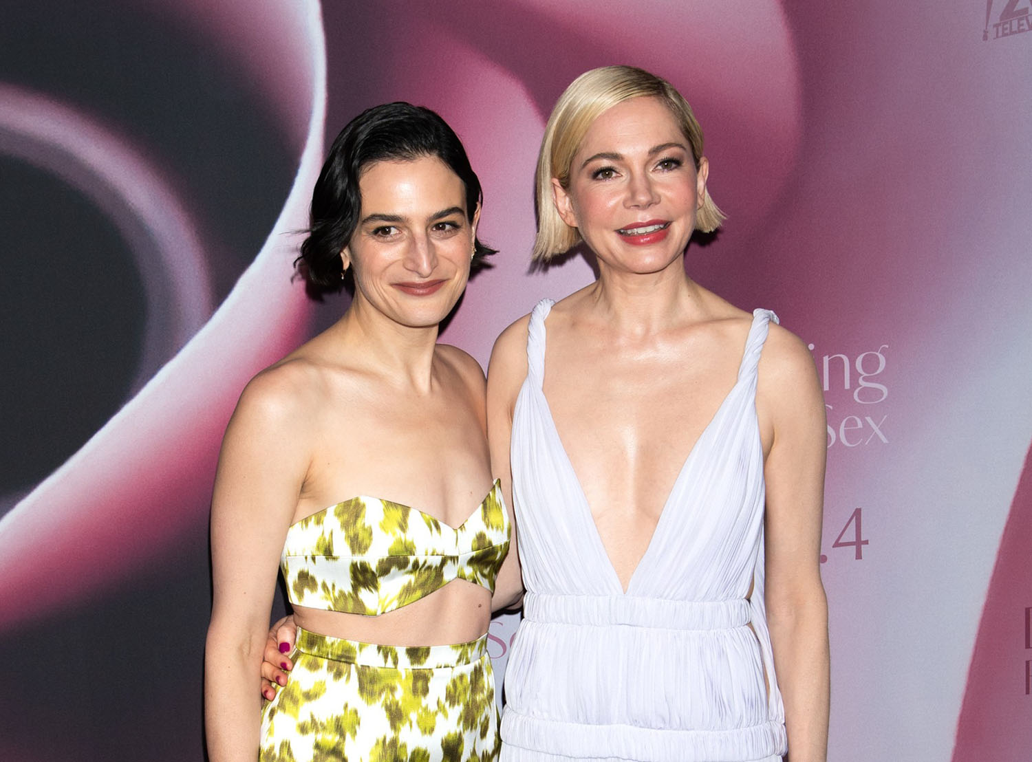Michelle Williams and Jenny Slate were in New York last night for the premiere of their new series Dying for Sex, premiering tomorrow on Hulu and Disney+ in Canada. They were close and cute on the red carpet together, co-stars with co-bobs.
