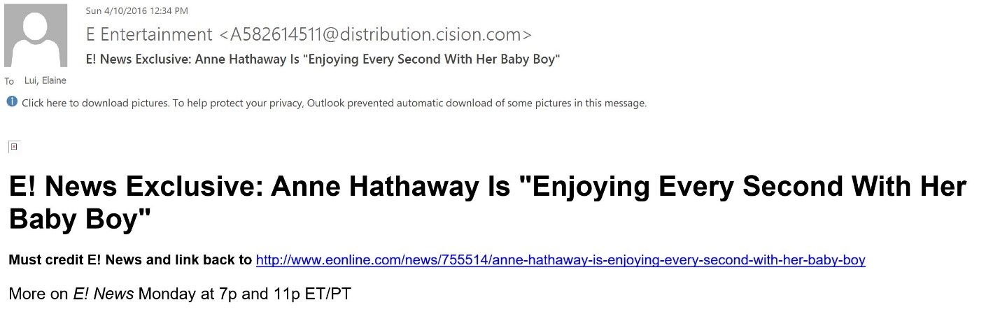 Basically, “Exclusive: Anne Hathaway loves her baby”.