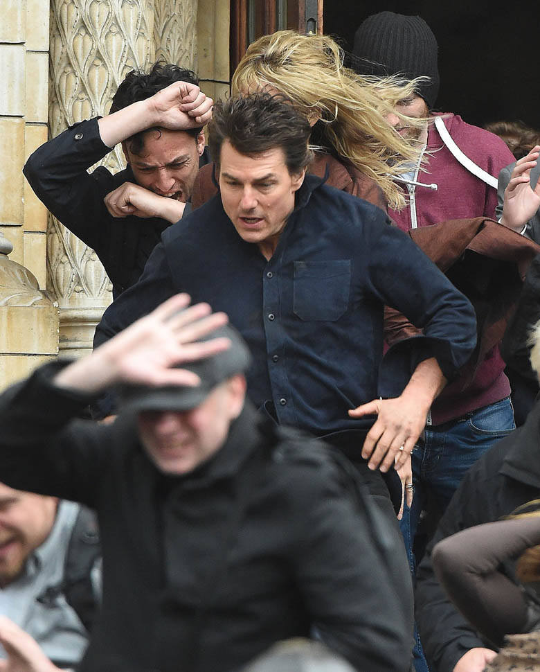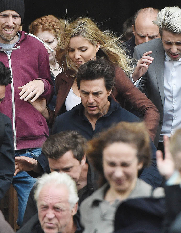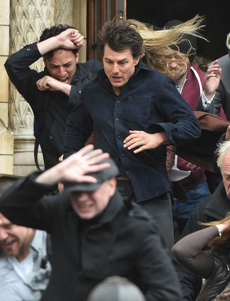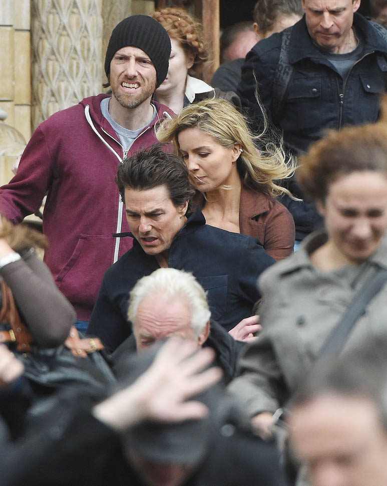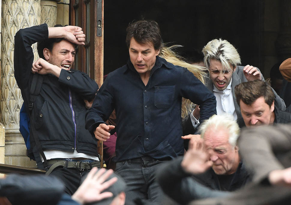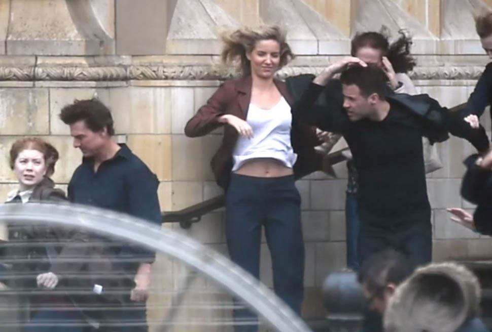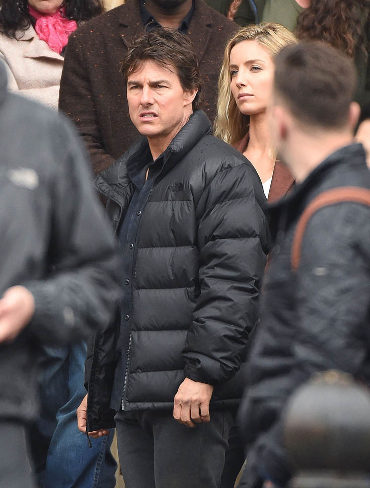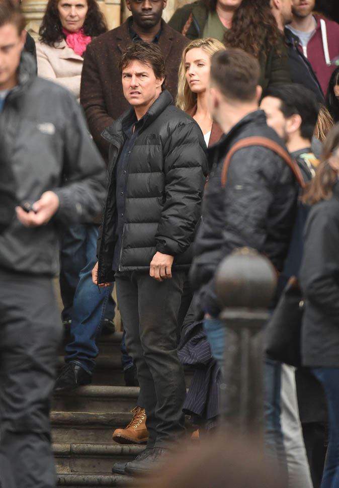 Attached - Tom on the set of The Mummy with Annabelle Wallis in London last week.