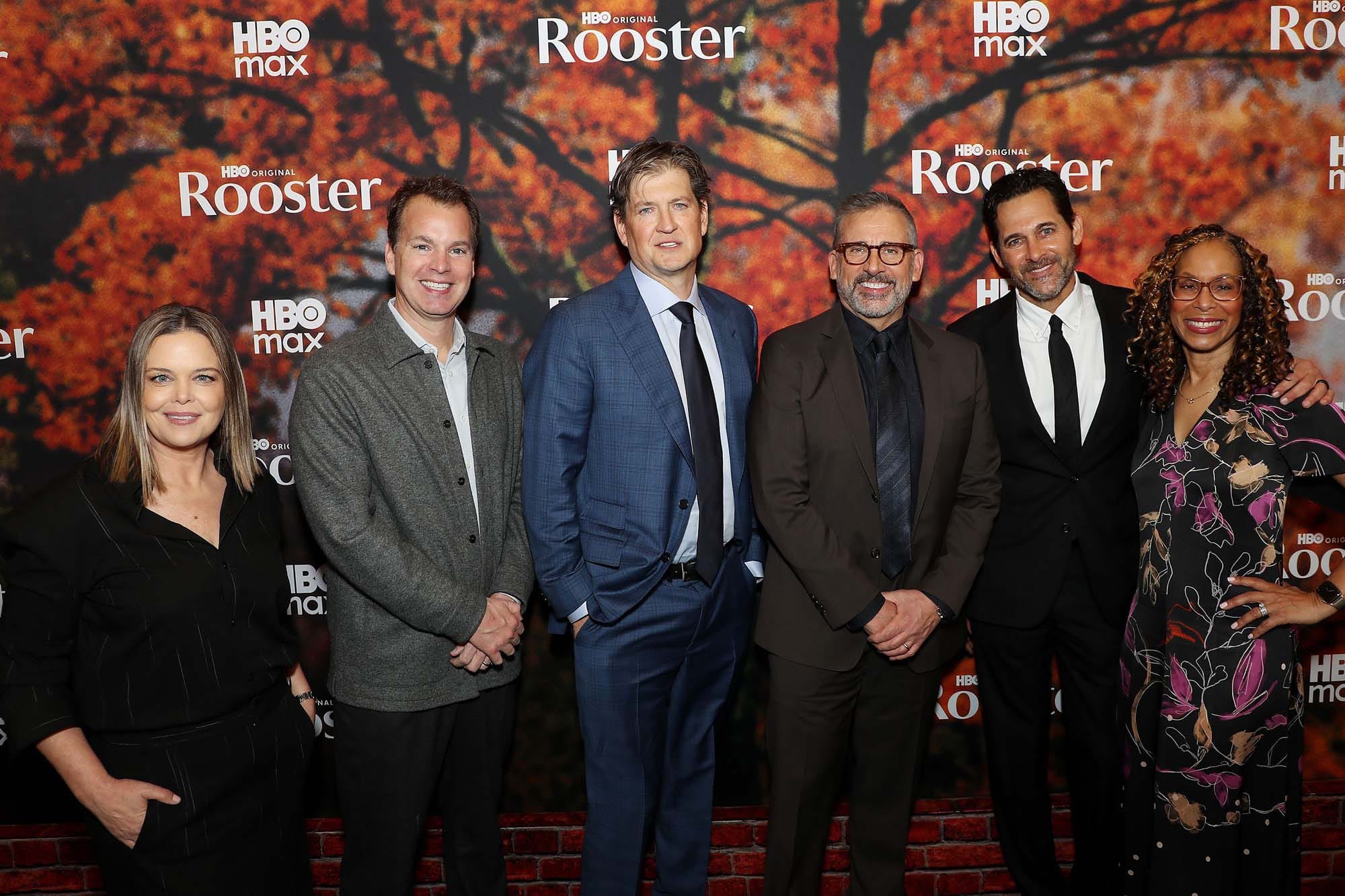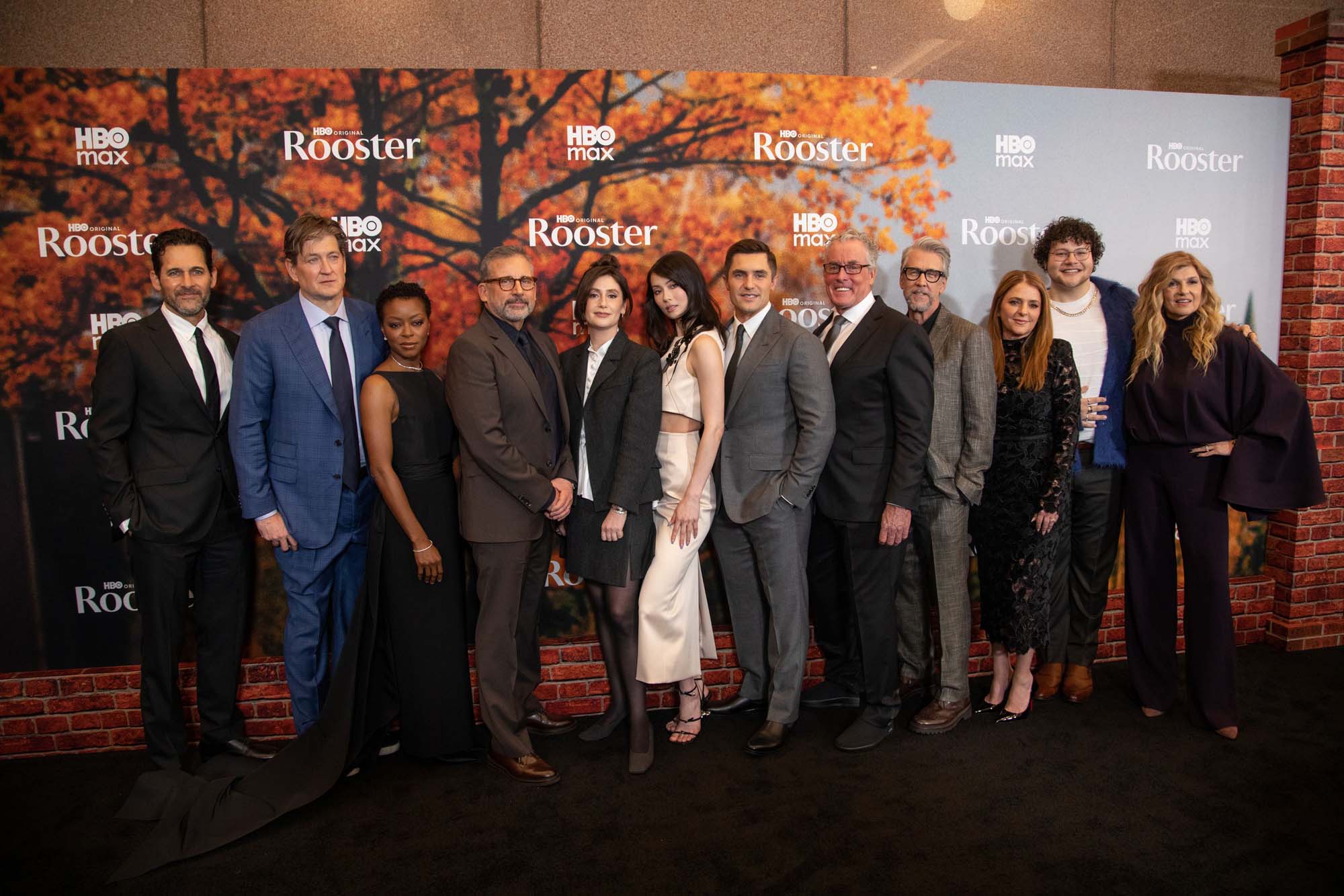 Matt Tarses, Bill Lawrence, Danielle Deadwyler, Steve Carell, Charly Clive, Lauren Tsai, Phil Dunster, John C. McGinley, Alan Ruck, Annie Mumolo, Maximo Salas and Connie Britton attend HBO's "Rooster" New York Premiere on March 03, 2026 in New York City