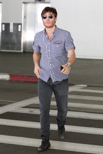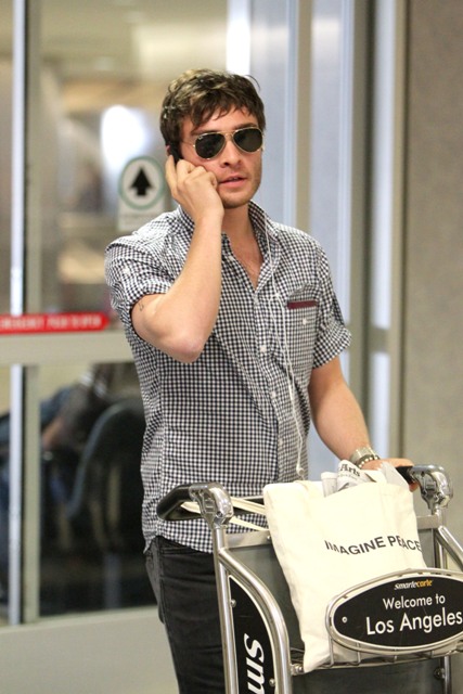 Ed Westwick arrived at LAX yesterday and totally stroked my quiver. He’s disgusting. And it’s hot that way. Not to be confused with Jacek’s HateF-ck either. A HateF-ck and a ShameF-ck are two totally different beasts. I don’t hate Ed Westwick. I just wouldn’t want you to know.