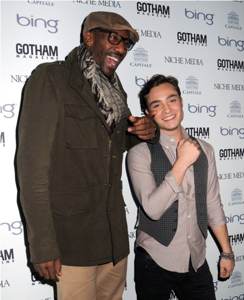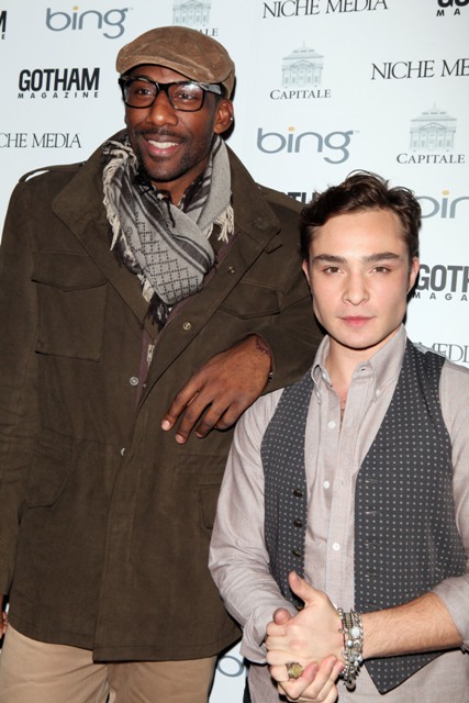 Not even Tom Cruise’s. Especially since Ed Westwick is small to begin with. Here he is at the Gotham Magazine event looking like Amar’e Stoudamire’s house elf. What makes him still my shamef-ck is that he seems to have a sense of humour about it. Unless of course you try to lance him with a lame ass pick up line about London: