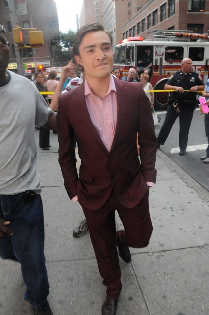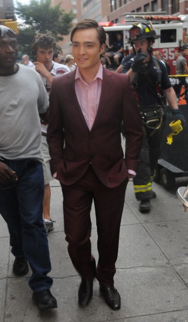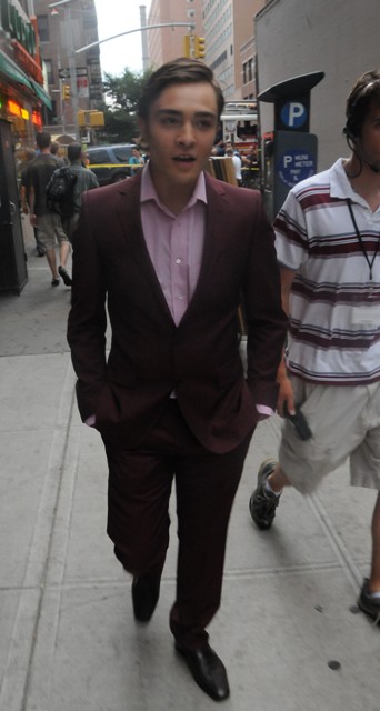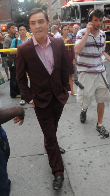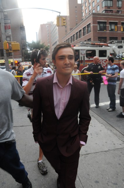 Lara is currently on holiday in London. So she’s missing a new set of new smarmy shamef*ck photos of Ed in New York on the set of Gossip Girl.