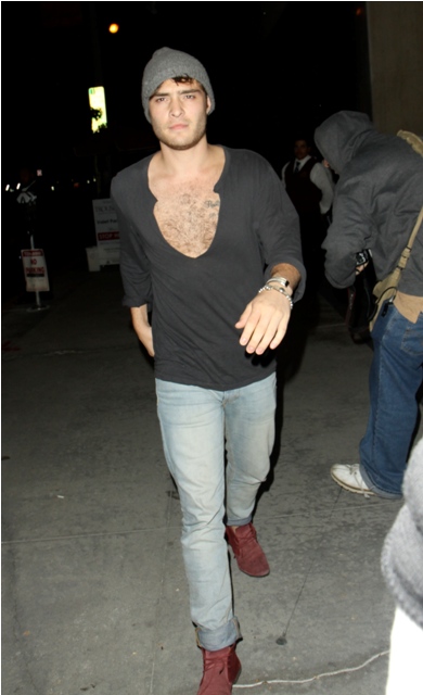 And Ed Westwick’s abuse of my quiver with his continued open shirt chest rug might just be it. Ed was in LA over the weekend and I don’t know what’s worse – the mess happening below his chin or that expression he’s making over lunch with a friend. So f-cking gross. And yet...