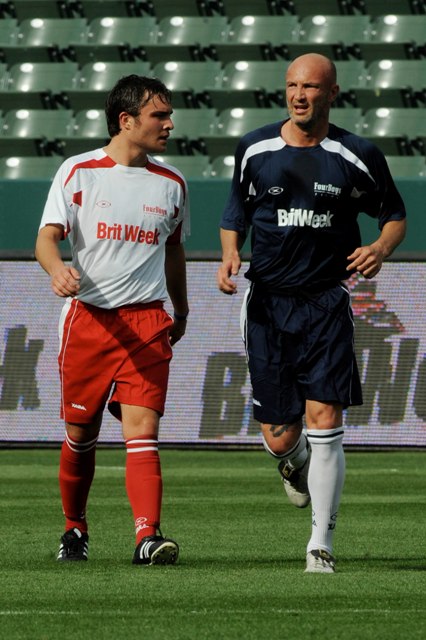 This weekend however he was in LA, playing soccer at a celebrity match as Jessica cheered on the sidelines.