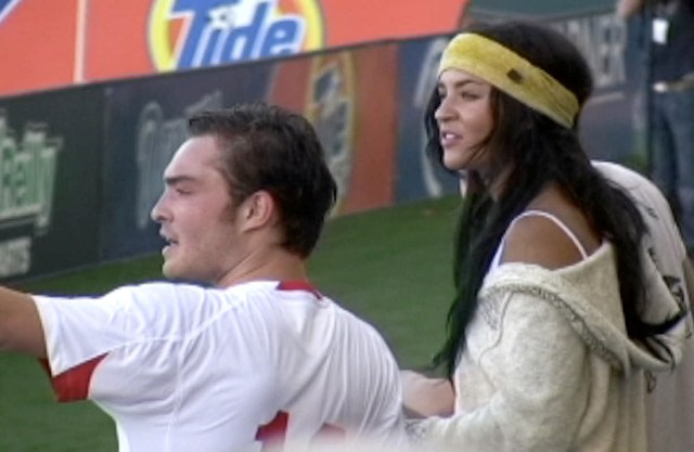 Oh...Chuck. Sporty Chuck is as disgusting as penguin-foot Chuck. In real life. looking sh-tty in an athletic capacity is a dealbreaker for me. Like, my husband has the worst style ever. And isn't the cool guy at the table. Never the one with the quick witty comeback. In fact, he’s actually known as “bad joke” dude. But on the ice, or playing tennis, swinging a golf club, touch football in the park, he is a total natural. His body was made for sport. Hot.