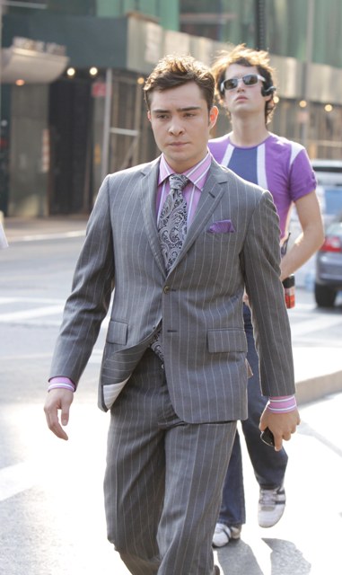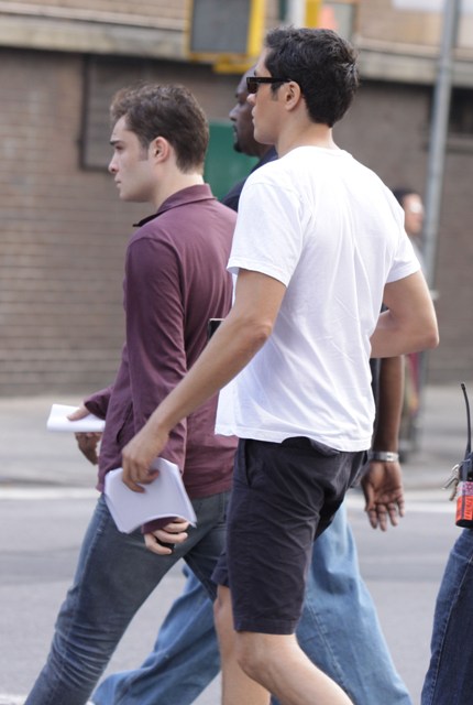 As revealed yesterday – spoiler alert – Chuck Bass on this season’s Gossip Girl will kiss a boy for Blair. The boy will be played by Neal Bledsoe and he was spotted on set today with Ed Westwick. Rather generic looking fellow. I’ve been staring at him for 5 minutes now and still can’t remember his face in my mind.