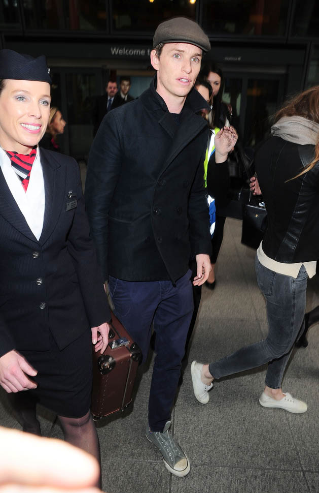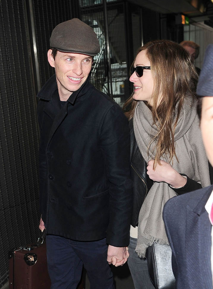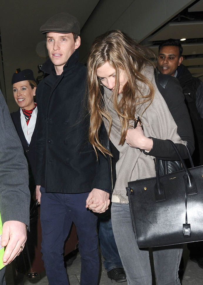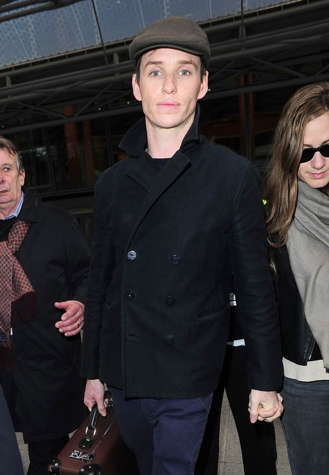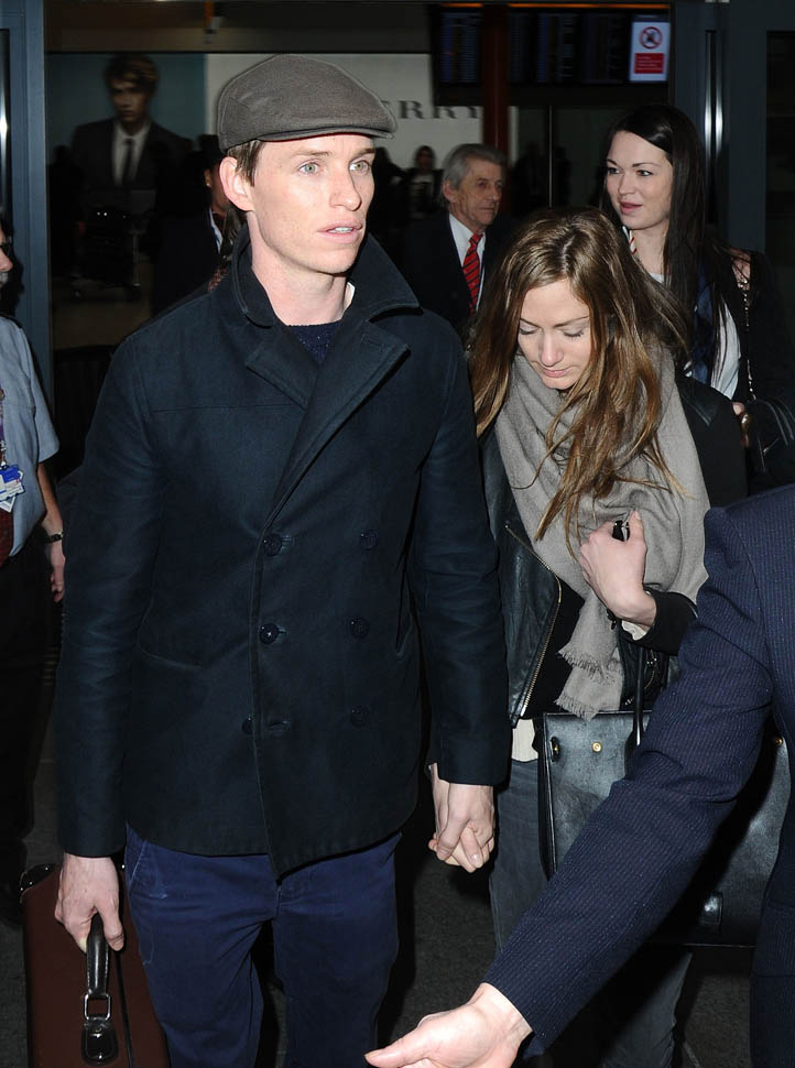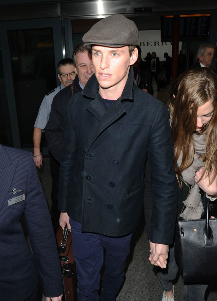 Eddie Redmayne and Hannah Bagshawe were seen at LAX yesterday and then landing at Heathrow after the Oscars and the parties. There was a story after the Globes about how he had to explain to airport security what the trophy was in his carry-on. He likely didn’t have the same problem with his Oscar.