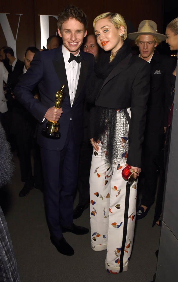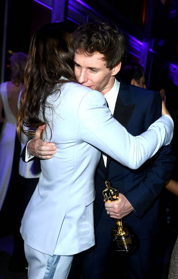 It’s a small thing, and it doesn’t mean anything, but I like it when they leave right after instead of lingering in LA for more dick sucking and ass kissing; I like it when they’ll only stay in Hollywood for as long as they have to. I mean, sure, he went to Vanity Fair, where he was practically mobbed by other celebrities, and that’s the expected victory lap (unless you’re George Clooney and no one tells you where to go), but as soon as they could, Eddie and Hannah were like, let’s get the f-ck out of here…