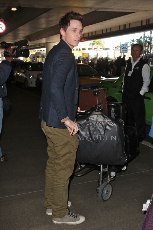 Eddie Redmayne arrived in LA yesterday with ... a lot of luggage. Given that he’s been the best dressed man so far during award season, this is understandable. He needs his gear. Let the man have his gear. Last time we heard from Eddie Redmayne he was throwing up at the BAFTAs. Happily he’s made a full recovery. This boy can’t afford to lose much weight, if any at all.