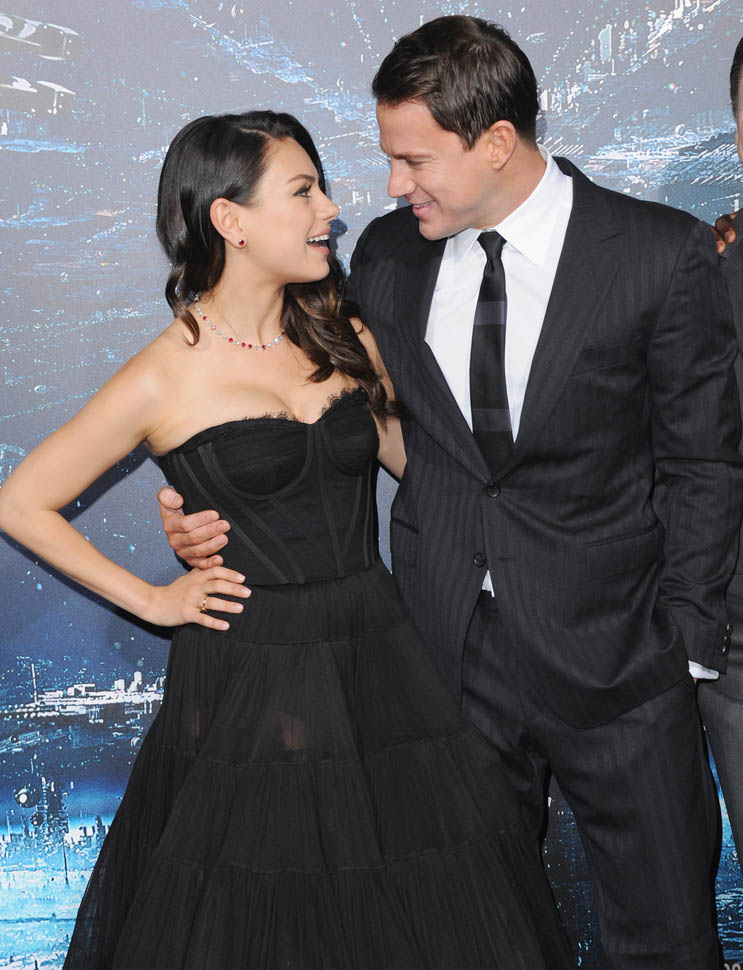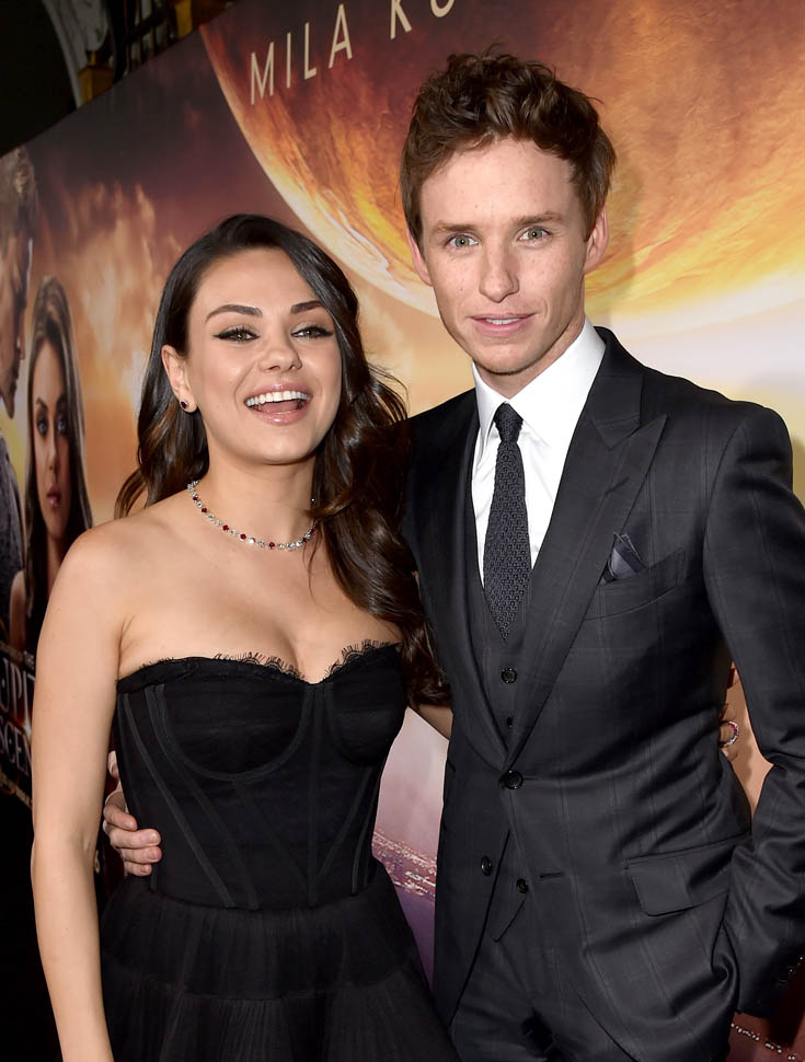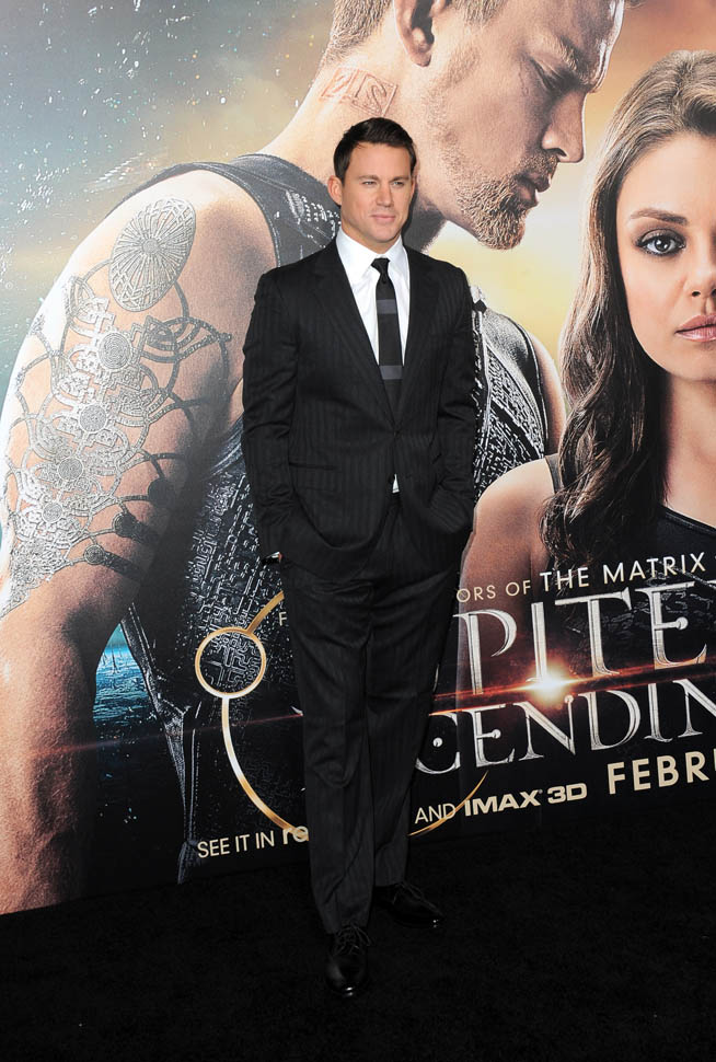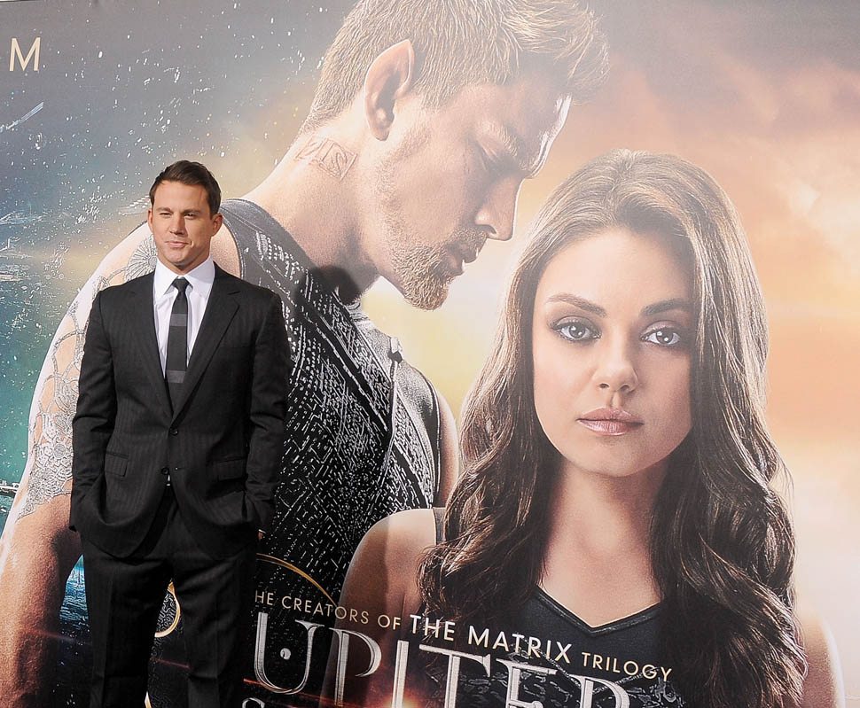 Here are Tatum, Redmayne, and Mila Kunis at the premiere last night.