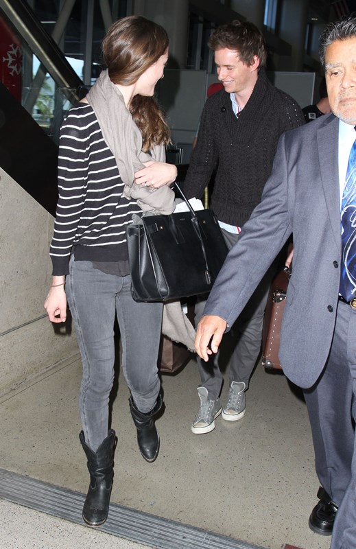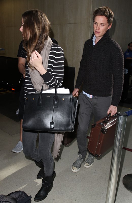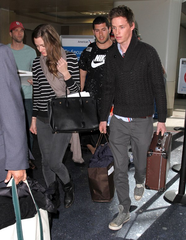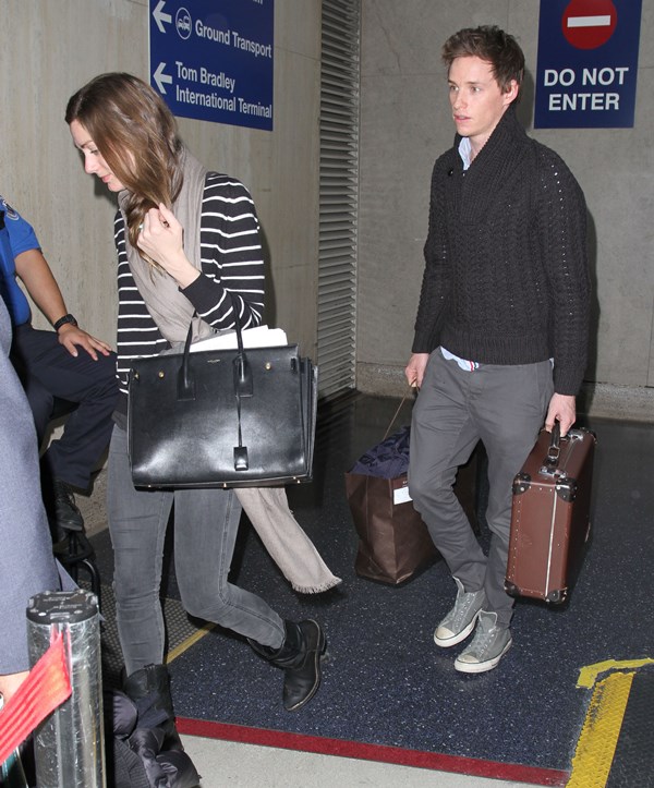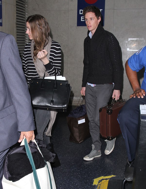 Eddie Redmayne and his wife Hannah Bagshawe were photographed arriving back in LA yesterday. They left after the Palm Springs Film Festival gala on the weekend for New York. There was an event in the city for The Theory Of Everything. Campaign, campaign, campaign. Today, after all, is the deadline for Oscar nomination voting. Now they’ve returned west to Hollywood for the Golden Globes this weekend. More parties, more appearances, more jockeying…