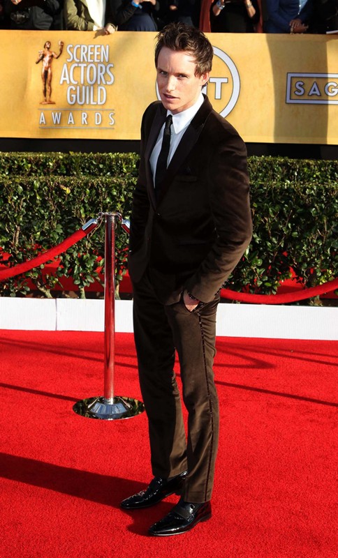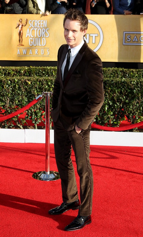 We still have the DGAs, the BAFTAs, and of course the Oscars to come. But Eddie Redmayne’s been on such a hot streak, I wonder if it’s now an automatic. If he’s there, he’s the best of the men, the class of the carpet. And the great part of that is that it’s never the same. It’s never just a black tux. This time, for the SAGs, it was brown velvet. I mean there’s some swagger in a man who decides to wear brown velvet to an awards show, non?