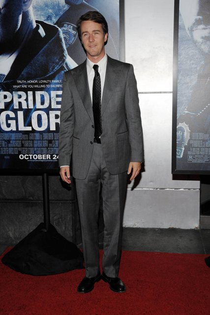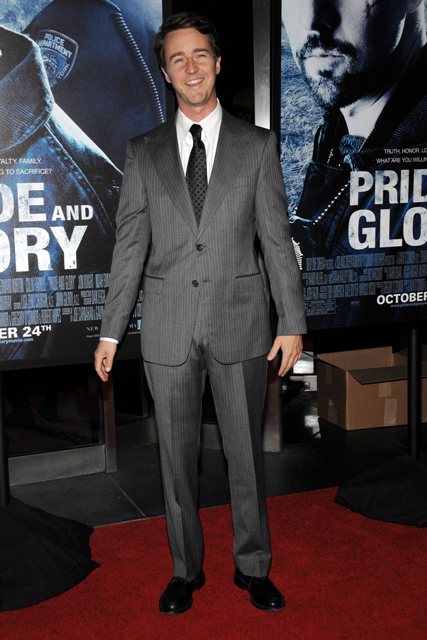 Last night, in New York, at the premiere of Pride & Glory, this is Edward Norton looking like he’s related to Prince Charles. Not a compliment.