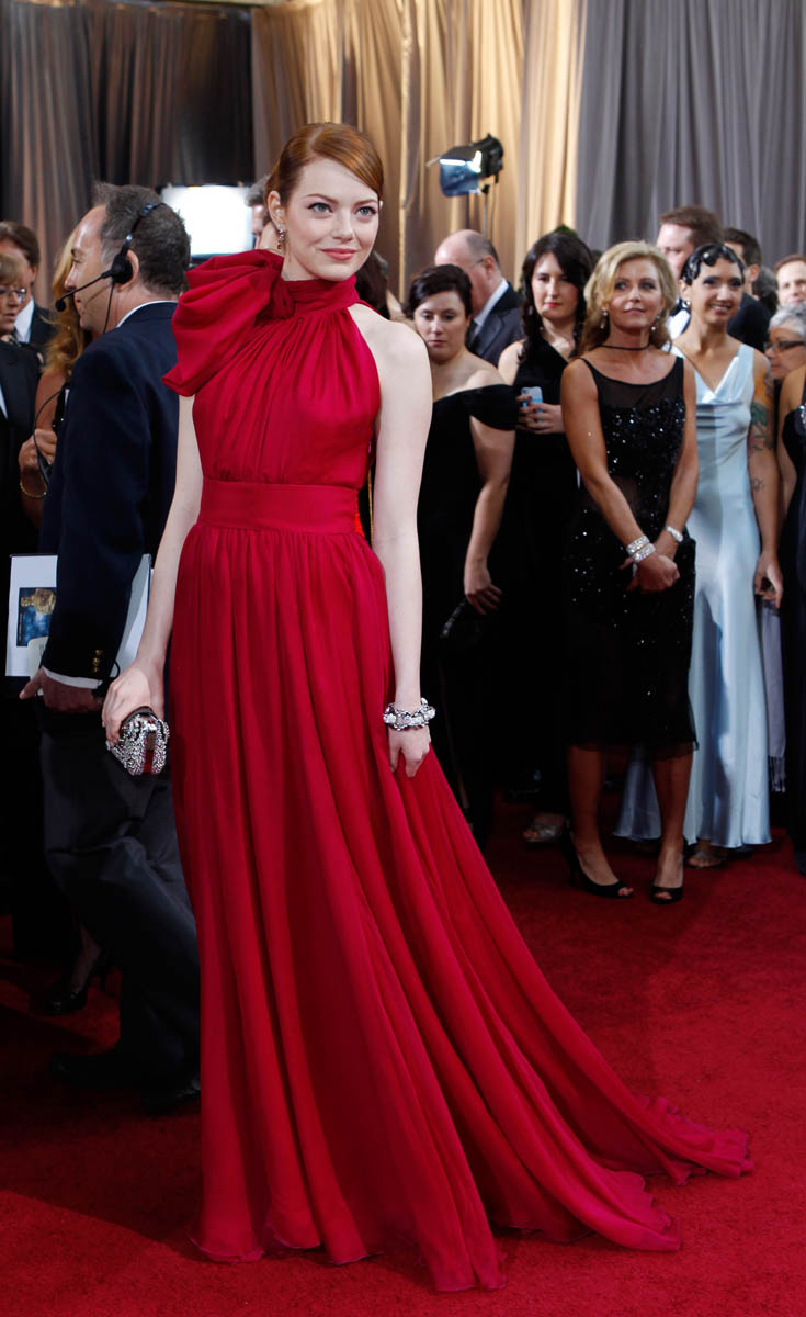 There were a number of people at the Oscars last night for the first time as presenters or nominees or both. What’s the strategy? Do you remember the first time Emma Stone was at the Oscars? She co-presented with Ben Stiller. She was one of the best presenters of the night. And she was one of the best dressed of the night. You may not be able to pull the dress off the top of your head right away but when I show it to you, you’ll know it right away. This one: