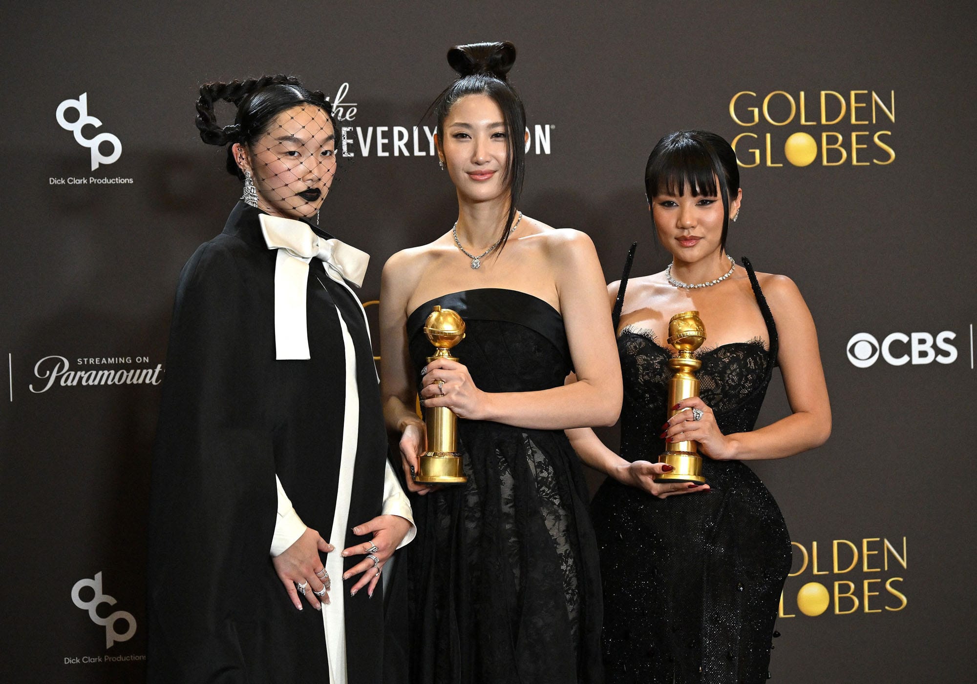 Audrey Nuna, EJAE, and Rei Ami, and Mark Sonnenblick, Yuhan, and 24 at the 83rd Annual Golden Globe Awards at The Beverly Hilton on January 11, 2026 in Beverly Hills, California