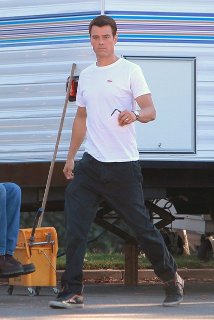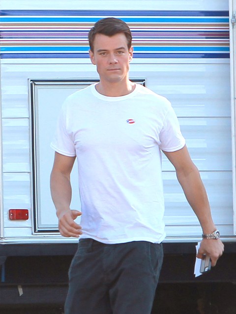 Whereas Hilary Duff looks like this is just a long line of errands she’s doing today, don’t you think? I guess the white top is ideal for letting the sticker show, and/or the red bra-slash-tank underneath implies patriotism, but don’t you think she could dress a little snappier for voting day when she KNEW she’d be photographed? Josh Duhamel went for this “blank canvas with a sticker” look as well, but he looks a little less …oh, I don’t know, completely posed?