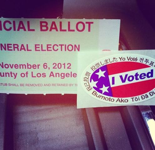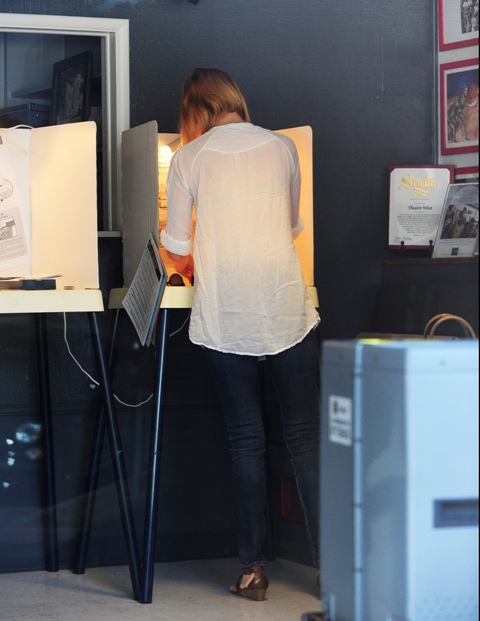 If anyone looks happiest about voting it’s Mae Whitman, who is so proud and happy you’d think it was her first time. I don’t think it is -- she’s 24 -- but it’s cute as all heck nonetheless…