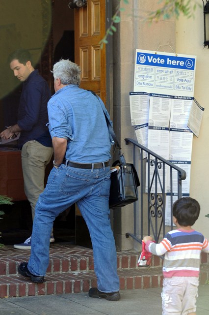 I do appreciate that Ryan Philippe took his son in to vote with him – never too early to learn how important it is, and all that. But since his parents are divorced, is this something that they share, like holidays? If one votes one way and one the other, do they make sure the kid gets to see each of them voting?