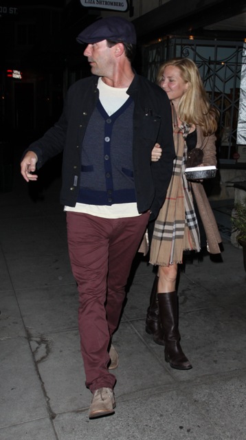 For those who love the devoted boyfriend angle of Hamm, he brought Jennifer Westfeldt, who looks so proud of him and whose cheeks, whatever else you might say about them, are pink with pride.