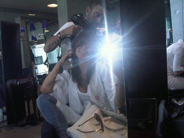 It’s Ely back in Milan hanging out with friends. It’s Ely taking a blackberry photo while getting her hair done. Apparently she’s there for a few days for a photo shoot. And then, like every great attention whore, she also talks about her stalker.