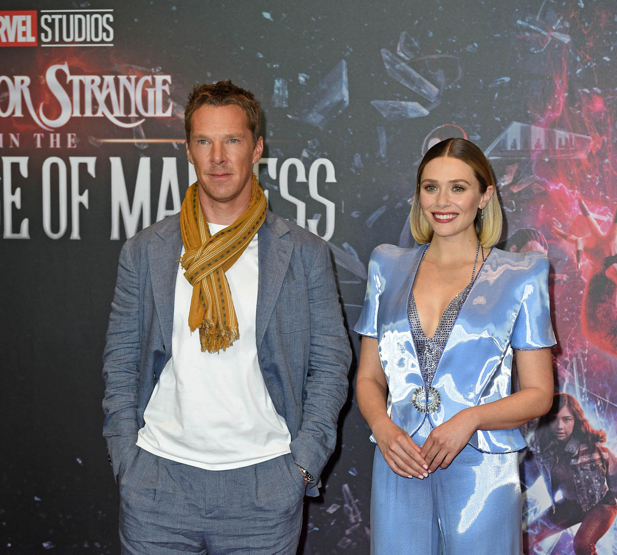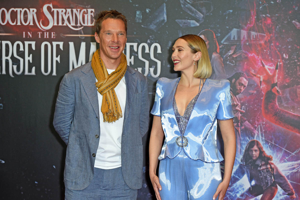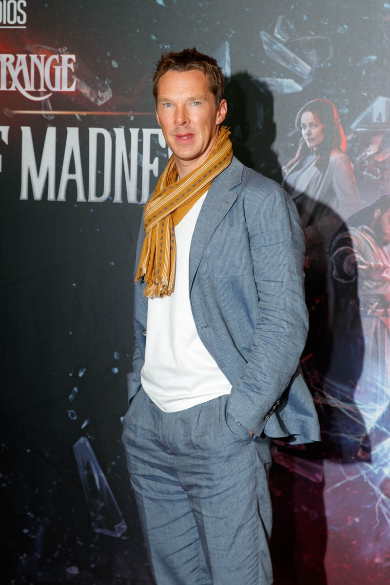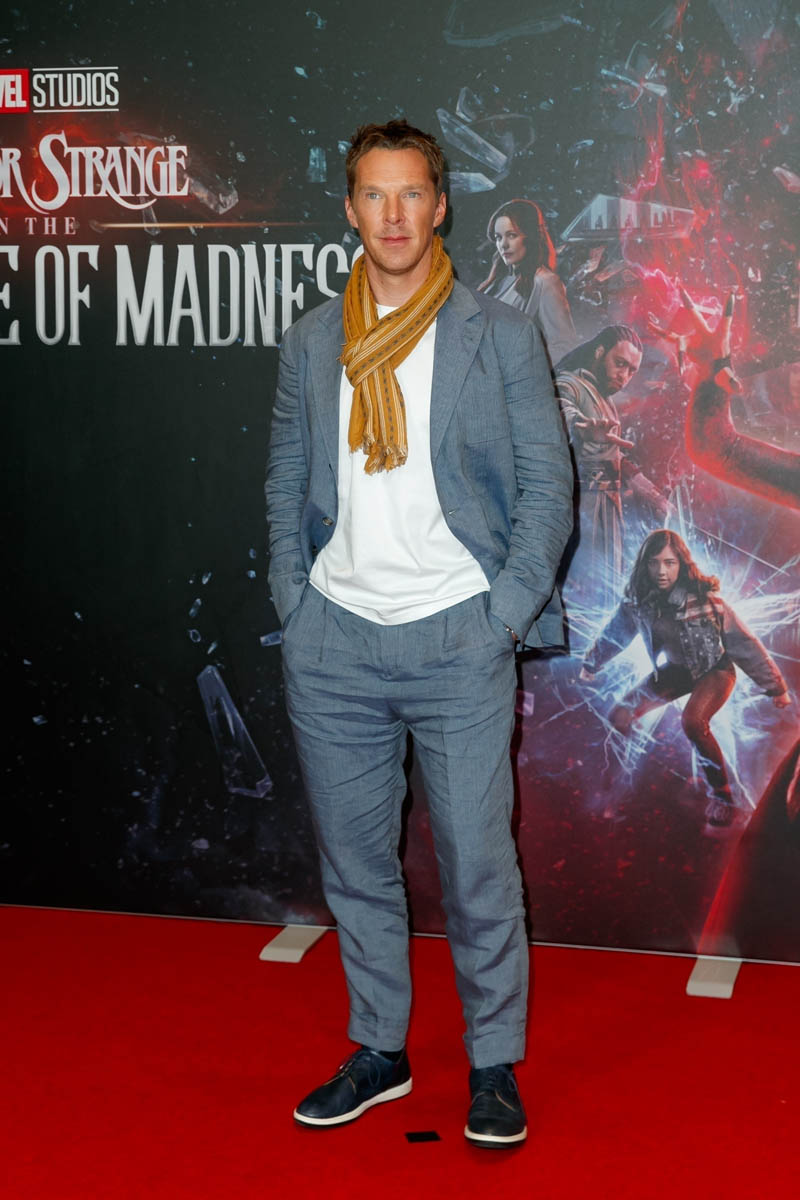 The press tour for Doctor Strange in the Multiverse of Madness officially kicked off in Berlin today, with Benedict Cumberbatch and Elizabeth Olsen doing a photocall to which they both dressed as if they are living in different universes, indeed. Cumberbuns is rocking a “philosophy prof after spring break” look, while Olsen is dressed like she’s doing Golden Girls cosplay. I love fancy pajamas as much as anyone, but those PANTS are a PROBLEM. What in the figure skater hell. If wrinkled suits and hideous embroidery are what we have to look forward to on this press tour, we are IN for IT over the next couple of weeks. I like both of these people very much, but yikes, y’all, let’s bring up the fashion. Some of us have to look at these photos as part of our job, it’s already stressing me out so much.