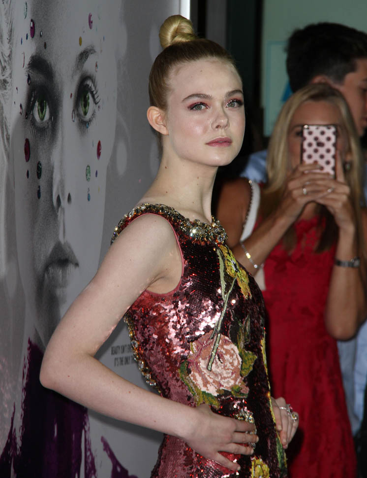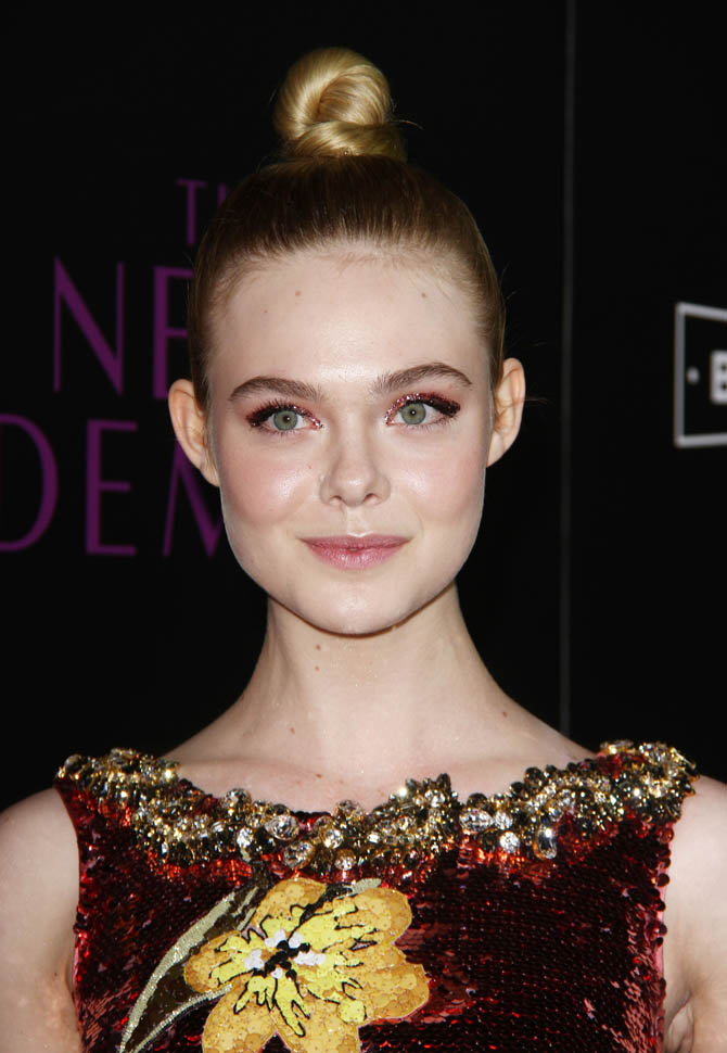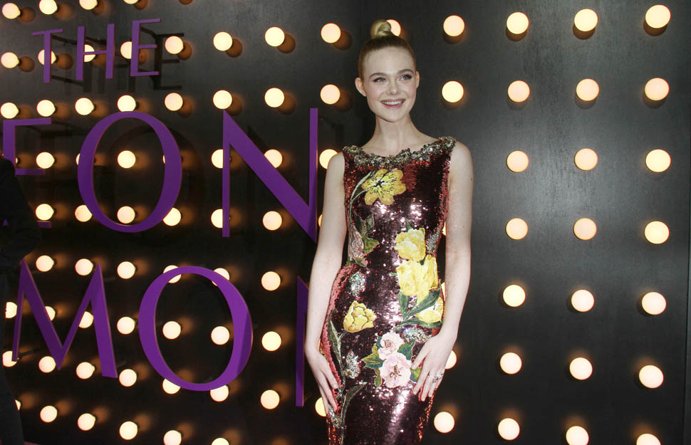 Nicolas Winding Refn talks about seventeenth century Italian art, and next to him, Elle Fanning listens intently. With his glasses and suit, he looks like a hip professor, with Fanning as his star pupil. They’re in town to promote their new movie, The Neon Demon, a giallo-inspired horror movie set in the world of high fashion (full review on Friday), which Refn co-wrote and directed. Fanning stars as Jesse, a teenaged model in Los Angeles, and is Refn’s new muse after two movies with Ryan Gosling. The Neon Demon may have more in common with Suspiria than The Birds, but Fanning is very much The Blonde to Refn’s Hitchcock.
