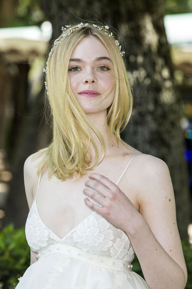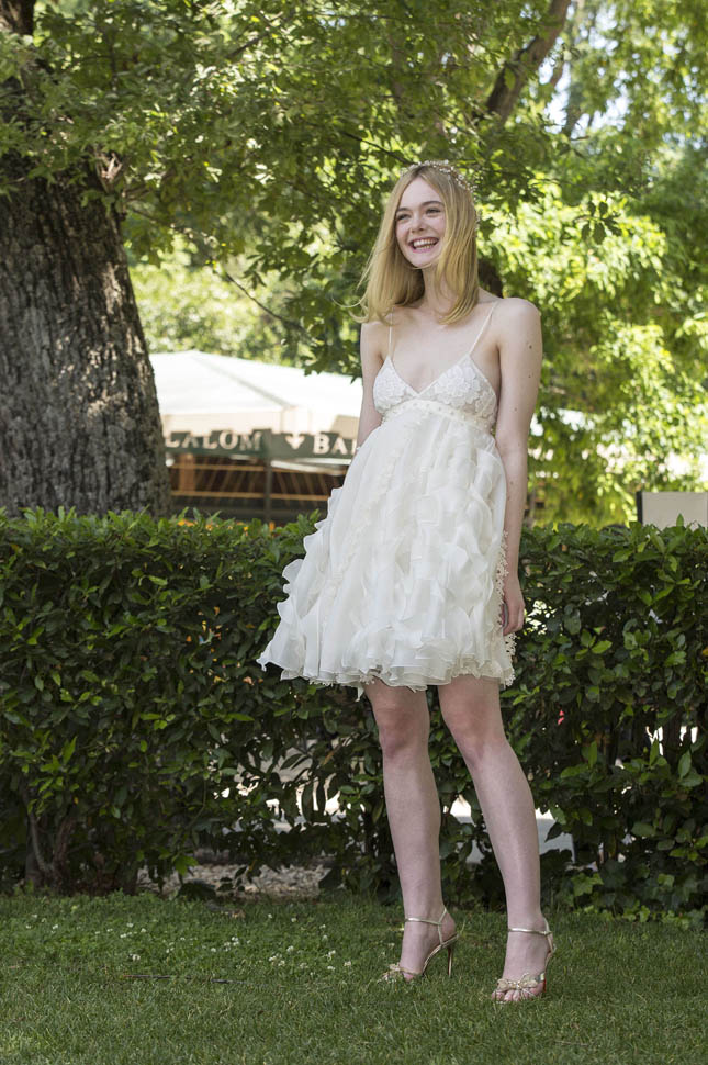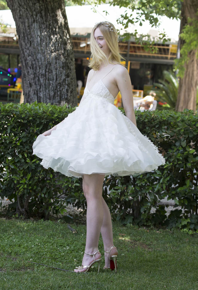 This is quite the outfit for a photo call. It’s a baby doll dress. It’s a wedding look. Especially with the hairpiece. Like what you change into for the reception, right?