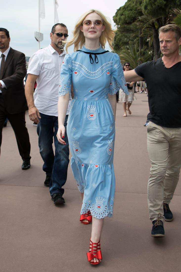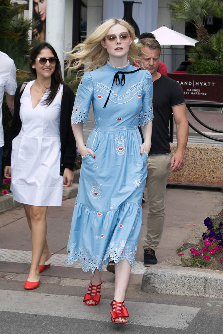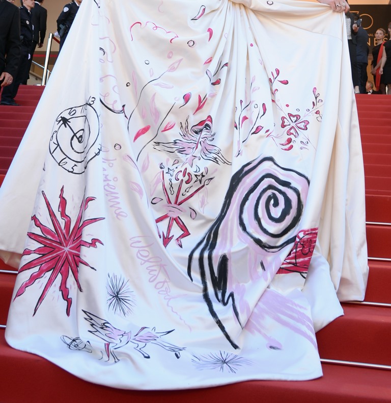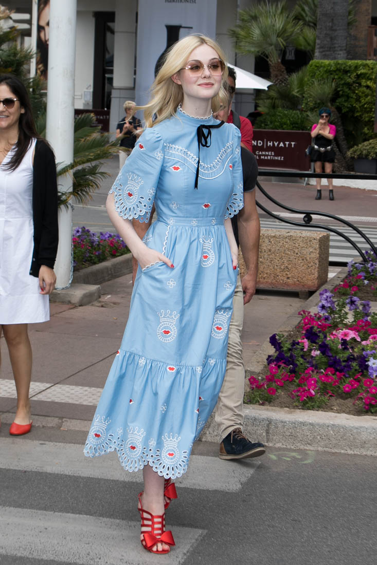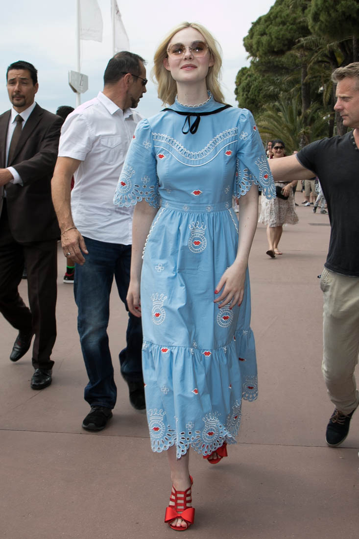 Anyway, here’s Elle Fanning at the opening night gala in Cannes and it’s perfect for Cannes. I am here for this princess dress. It’s custom Vivienne Westwood, made specifically for her, with a unicorn hand-painted on the back. VOGUE has more details about the design. I don’t want to see this at the MET Gala. But in Cannes? This is exactly what you do in Cannes.