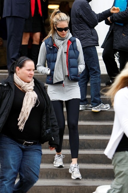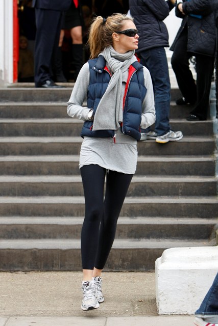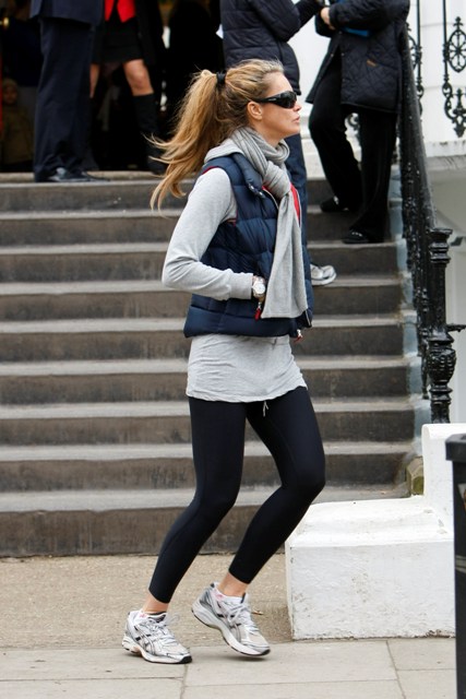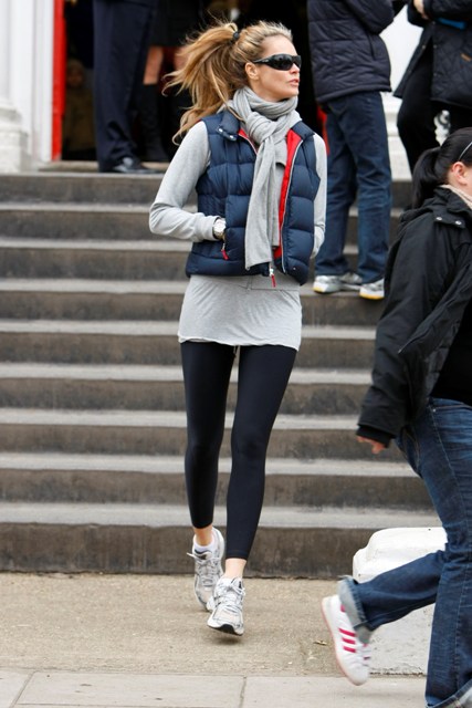 This is Elle Macpherson dropping her kids off at school today. She has 2 sons. She looks like she’s running around on a college campus. Turning 45 at the end of the month!